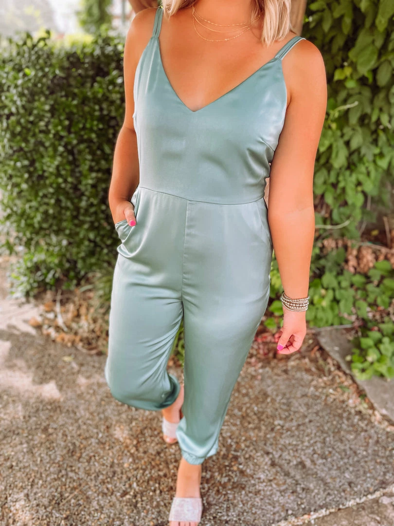 Don’t think about it, buy the jumpsuit! Meet the Trinity Jogger Jumpsuit! Designed with a satin fabric + v neck line + adjustable straps + zipper closure + jogger fit. This one of a kind item is the perfect addition to your summer standouts! Styled with the Skylar One Band Sandals + the Toss it Fancy Earrings.