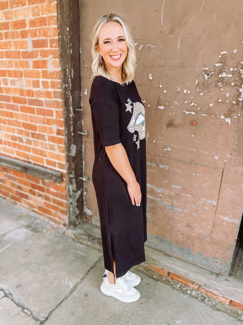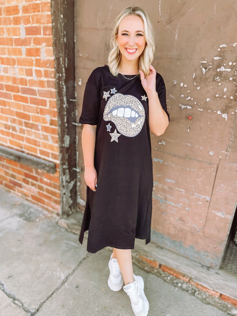 Calling all leopard lovers!! This sweet t-shirt dress is for you! Showcasing the most comfortable fit for this spring & summer! Tailored with a curved neckline, short sleeves, and a square hem with side slits. Finishing with a sassy design! This casual comfy dress will move with you all day long! Styled with our Evie Sneakers.