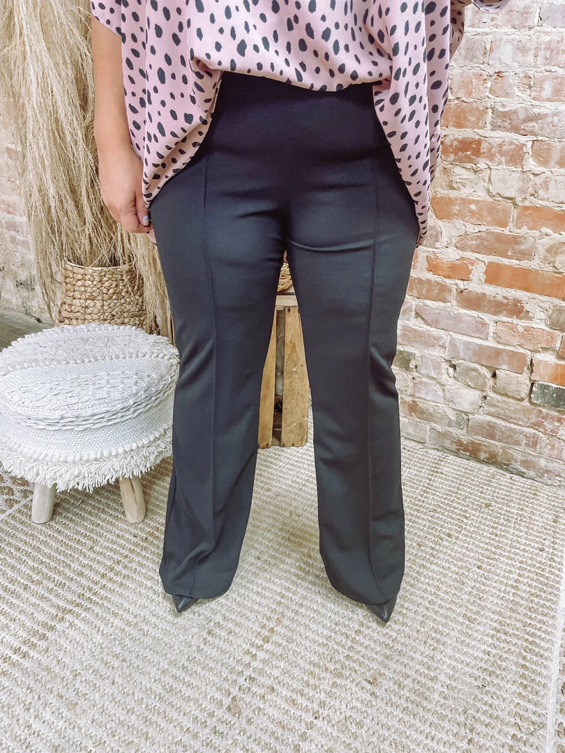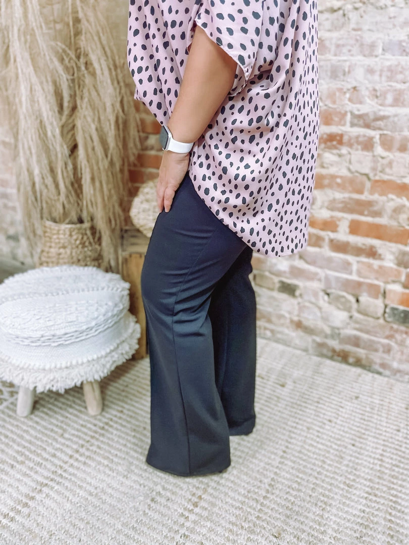 Our Leah Flare Pants feature an elastic waist band, front seam detail and super breathable fabrication! Versatile pants for work and play, a dressy pair of pants can do so much for a girls closet! Perfectly paired with our Isla Leopard V Neck Blouse.