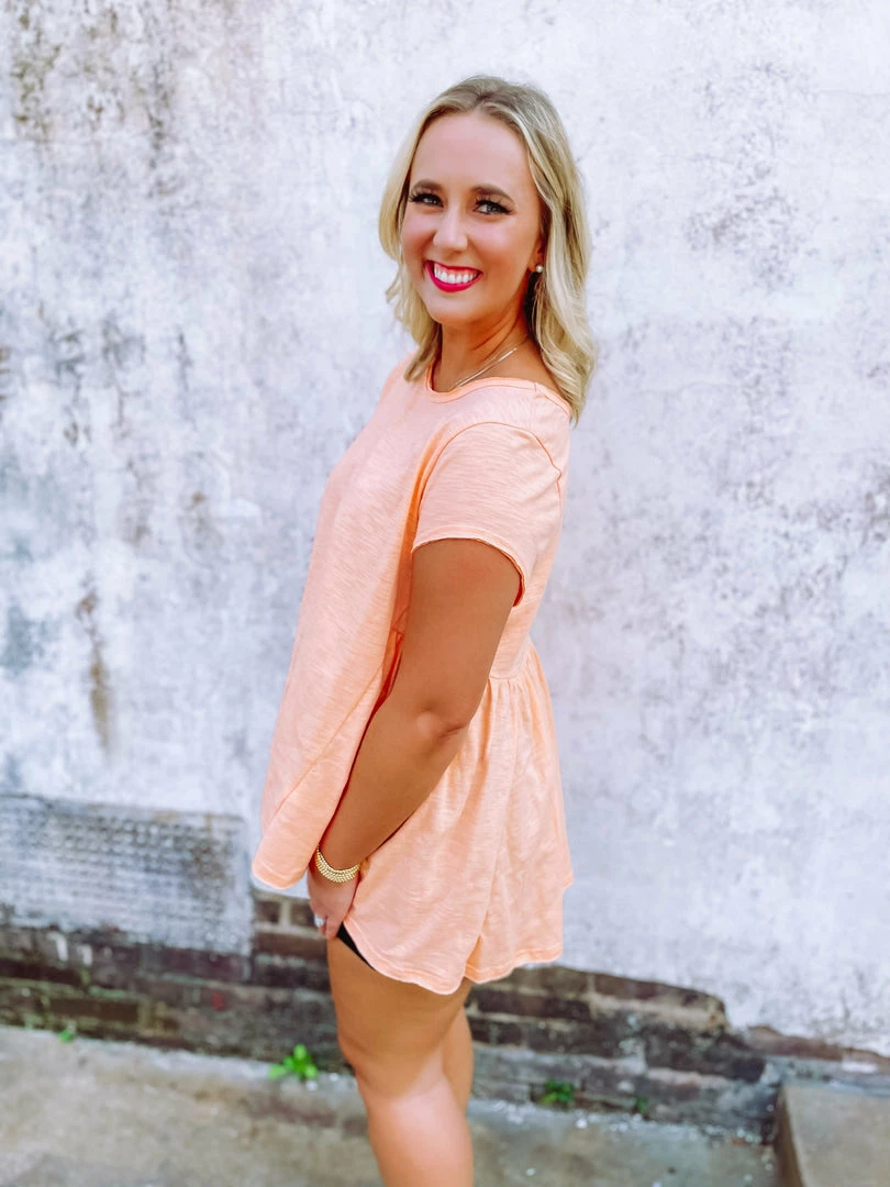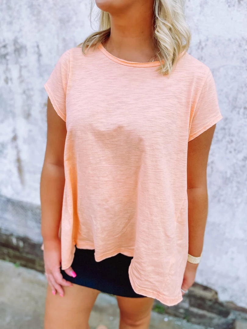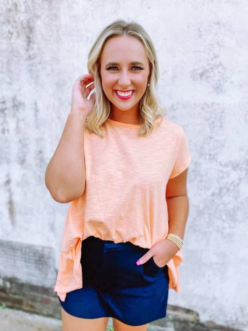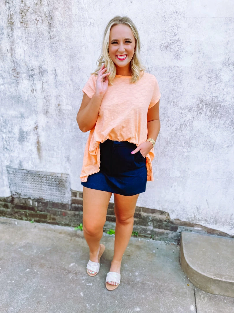 Don’t want to have to think about your next outfit? You won’t have to in the Kelly Top! Such a great piece to throw on and GO! Showcasing a round neck line + hi low hem + pleated details. Style it like Shelby and add the Everly Skort + the Skylar One Band Sandals.