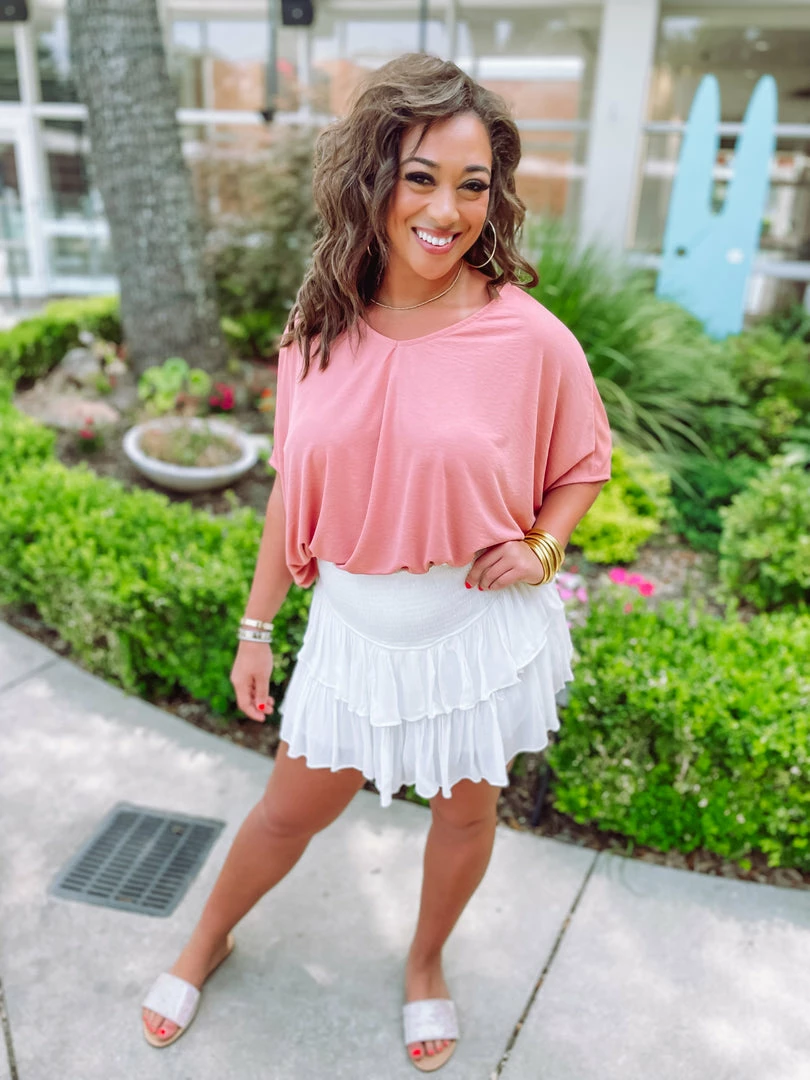 Hey girly girl! Meet the Laramie Tunic Top! Tailored with a round neck line + lightweight, breathable material + angled hem. This oversized, tunic design makes this great for the summer heat! This tunic top will treat you right all year round! Styled with our Brandy Woven Skirt + Skylar One Band Sandals.