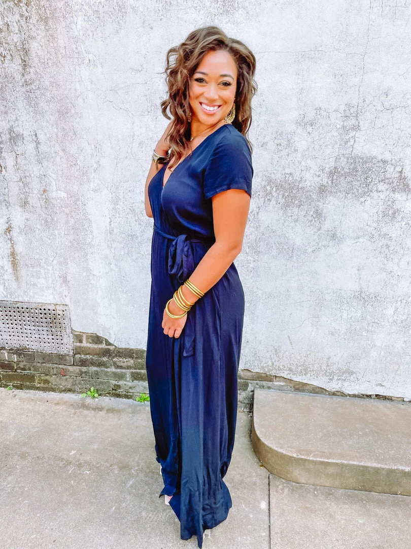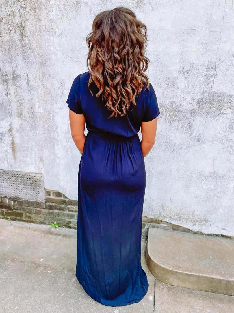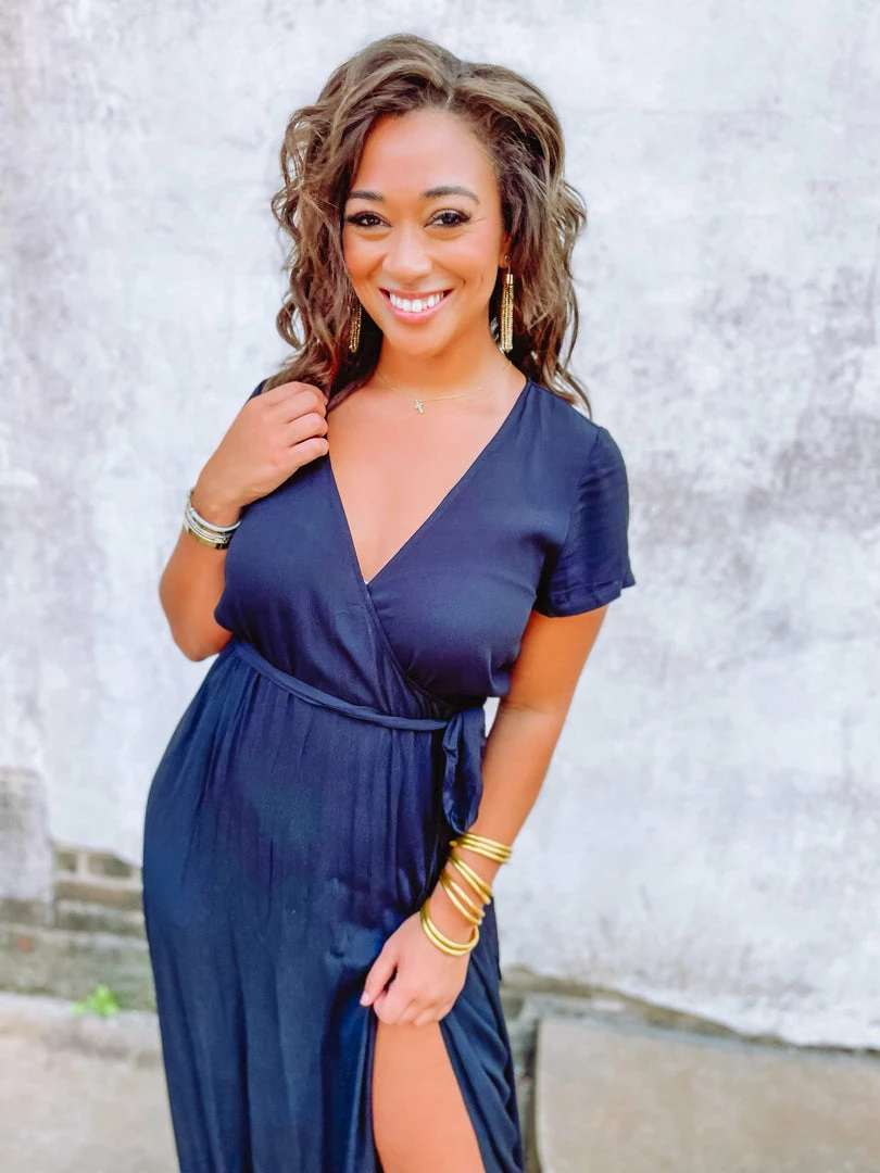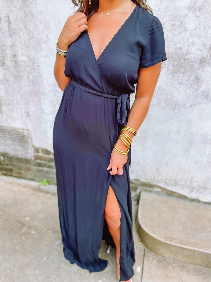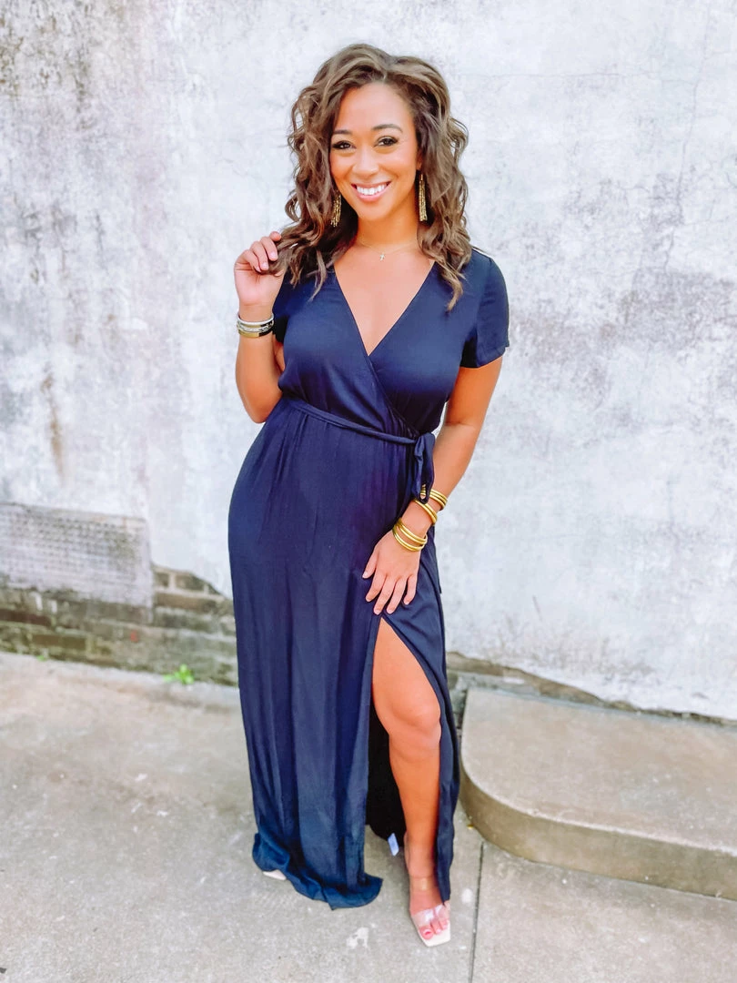 Get wrapped up in the Ella Dress! Showcasing a v neck line + wrap design that leads to an elegant maxi skirt + adjustable tie closure. This piece is straight DYNAMITE! Perfect any event you have coming up! Styled with our Toss It Fancy Earrings.