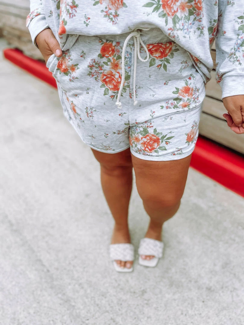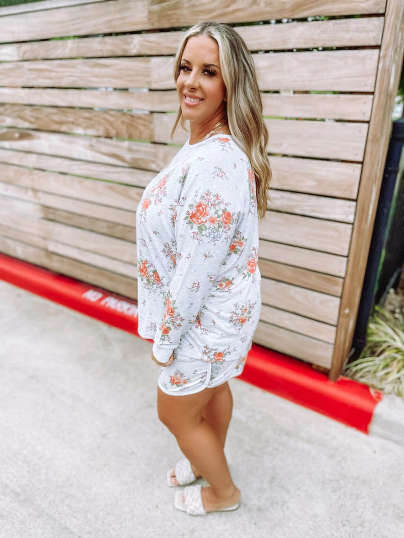 Our Harlow Floral Shorts Set is unparalleled comfort! Showing off a super soft comfy fabrication + long sleeves + hi low curved hem! The shorts are designed with 2 side pockets and an elasticized drawstring waistband! Make this set your #1 loungewear or pair with a denim jacket + sneakers!