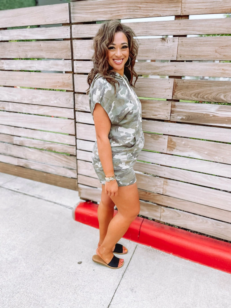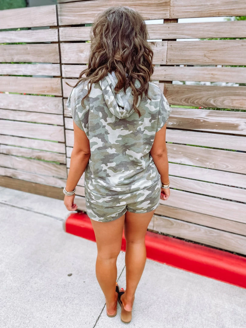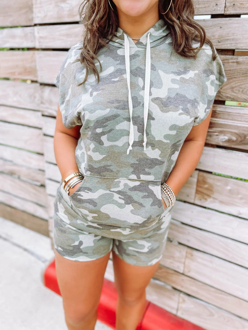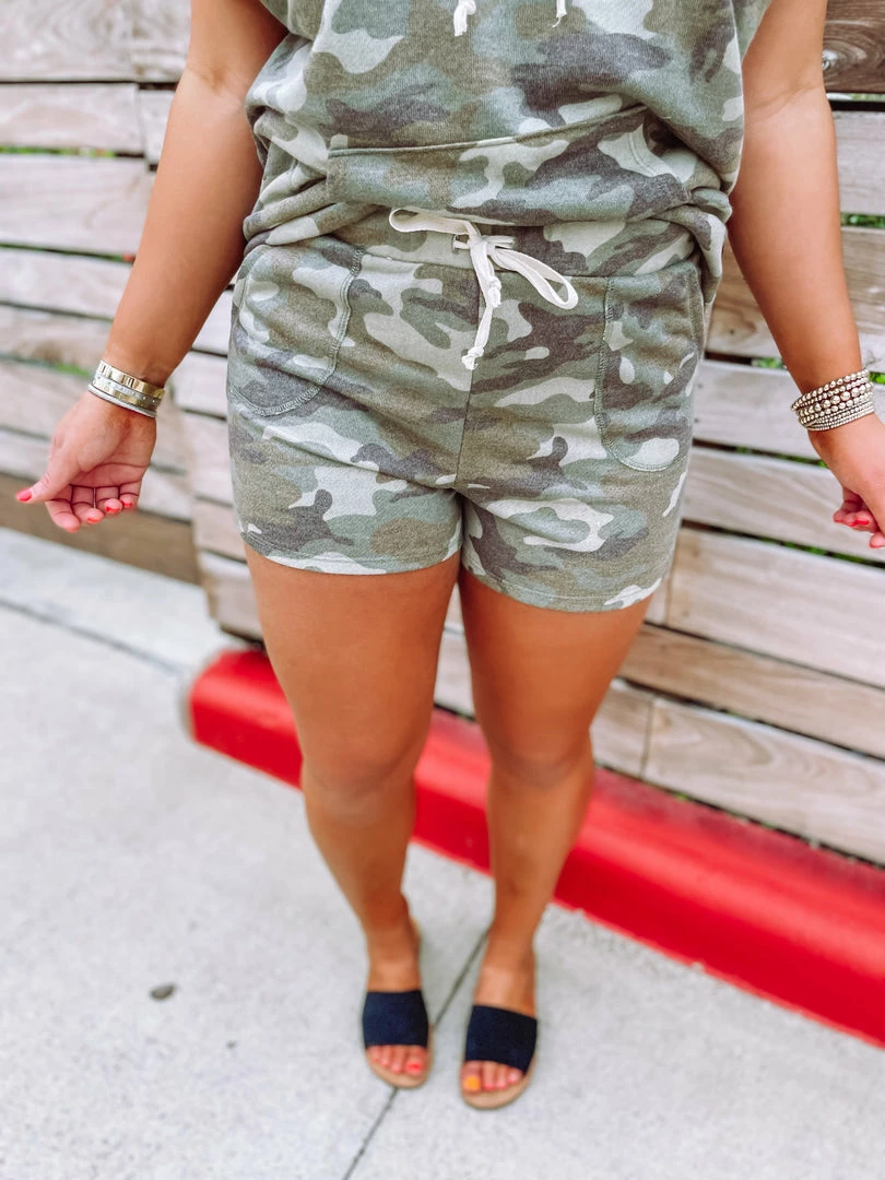 Stay Fashion Forward & Comfortable in our Erin Camo Hoodie & Shorts Set! Featuring dolman short sleeves, kangaroo pouch, hoodie and square hem. The bottoms bring you elasticized drawstring waistband and 2 side pockets! & We can’t forget — It’s available in 2 colors: Mocha & Army! Snag this comfy look now for your bestie or treat yo self!