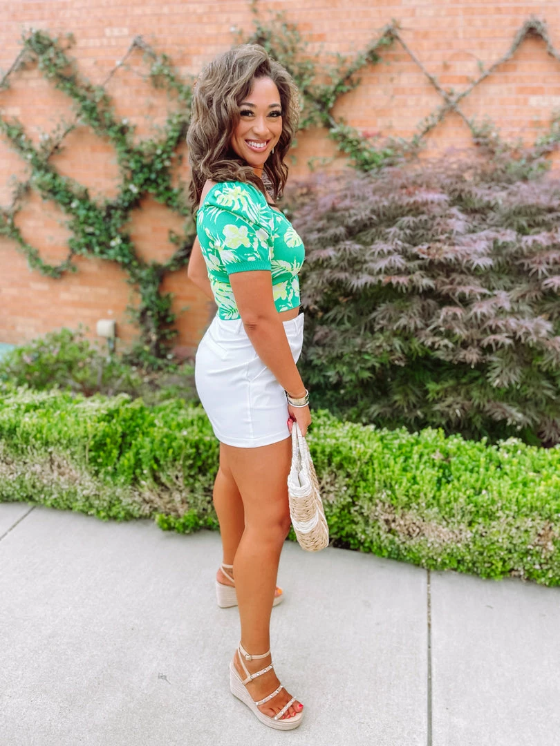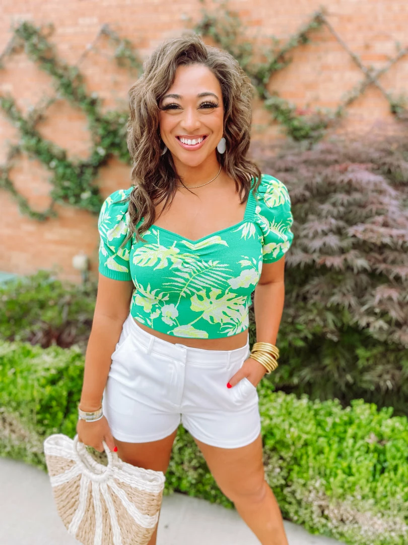 If this top doesn’t make you want summer forever, I don’t know what will! Meet the Sallie Top! Designed with a sweetheart neck line + puff sleeves + ruched detail + jacquard fabric pattern. This femme top is sure to be a hit where ever this summer takes you! Styled with the Raya Shorts + the Giving Wedges + Ruby Straw Summer Beach Tote.