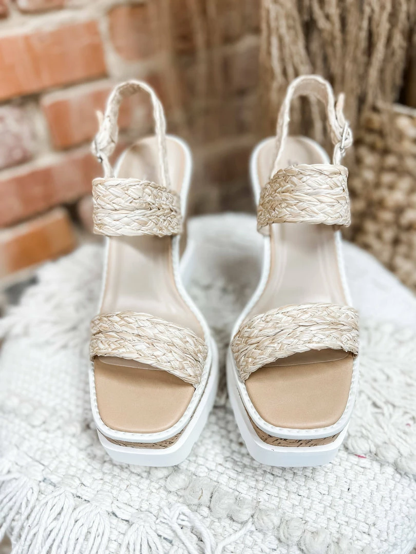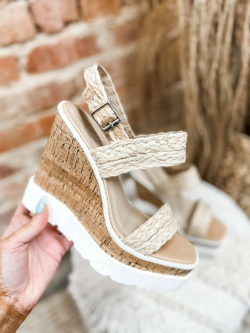 Fun wedges are here to stay! Meet the Adler!!! Showcasing an ankle strap + 2 thick straps with jute detailing + thick cork wedge + white sneaker sole! These are the sandals of the season and are just too cute not to add to cart!
