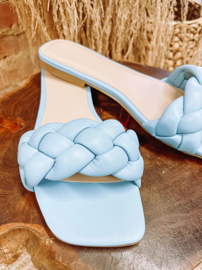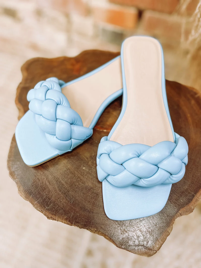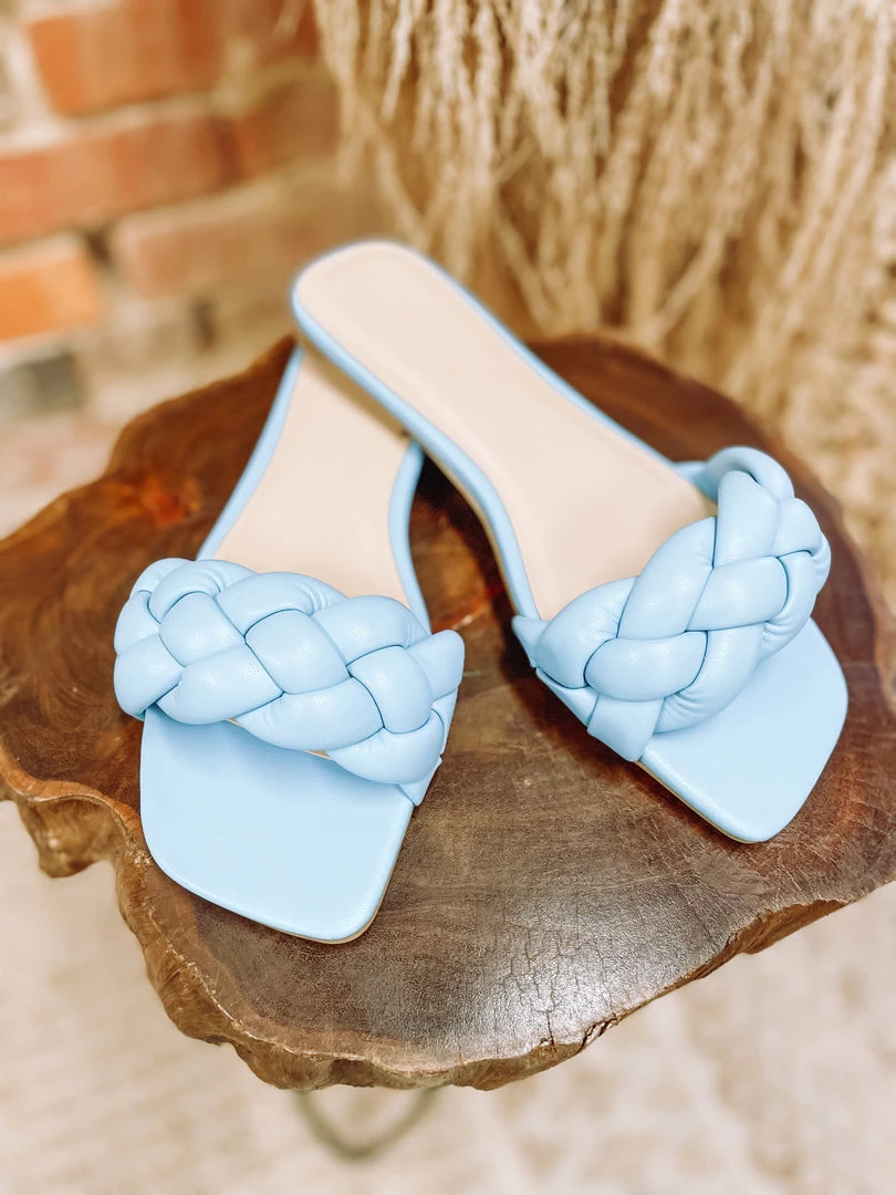 Add some trendy comfort to your outfit with our Ball Twist Sandals! Bringing a square, woven shape & style + slip ons! Ultimate comfort and summer must have!