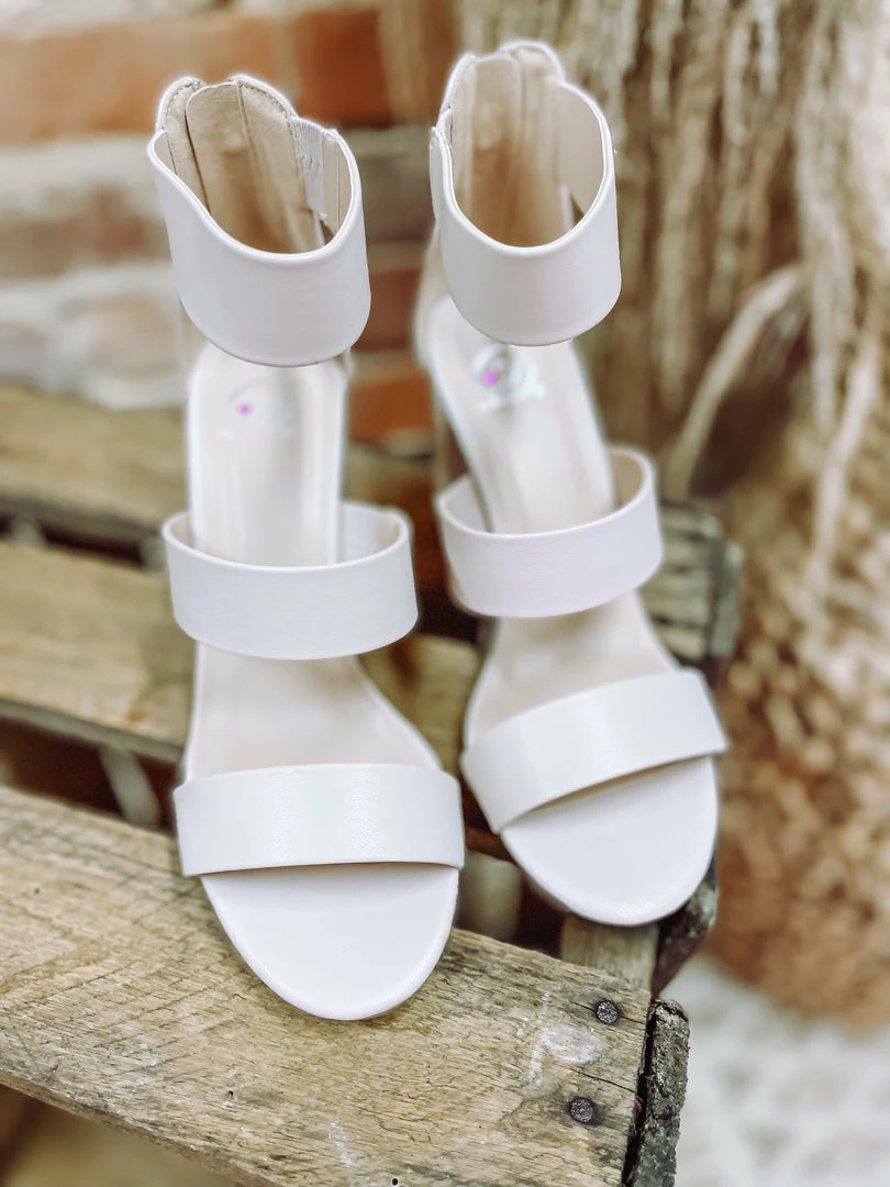 Nude + Elegant! Need we say more!! With 3 straps and a zipper on the back of your ankle, these heels will dress up your outfit so easily!