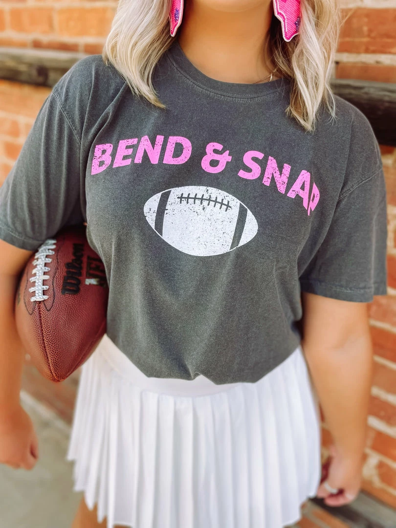 Bend and Snap ladies!! This new graphic tee is oh so cute with the hot pink wording + football graphic. Designed on a grey shirt this top is perfect with jean shorts and sneakers or styled like Shelby! Perfectly paired with the Kenna Pleated Skirt + the Becca Beaded Texas Earrings.