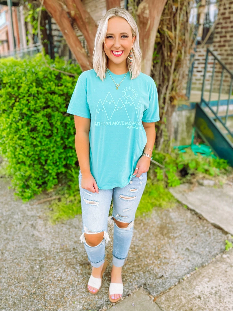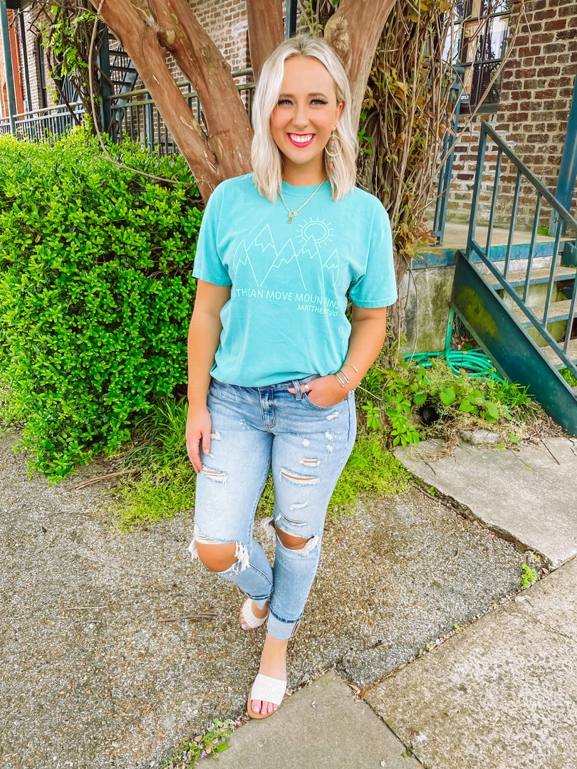 Rep a favorite Bible verse with our new vibrant tee! Featured on a Comfort Colors top is the perfect tee for all your needs!! Road trip, class, weekend fun, or just because you can never have too many TX shirts! Styled with our Efron Sandals and Nelly Distressed Splattered Boyfriend Jeans.