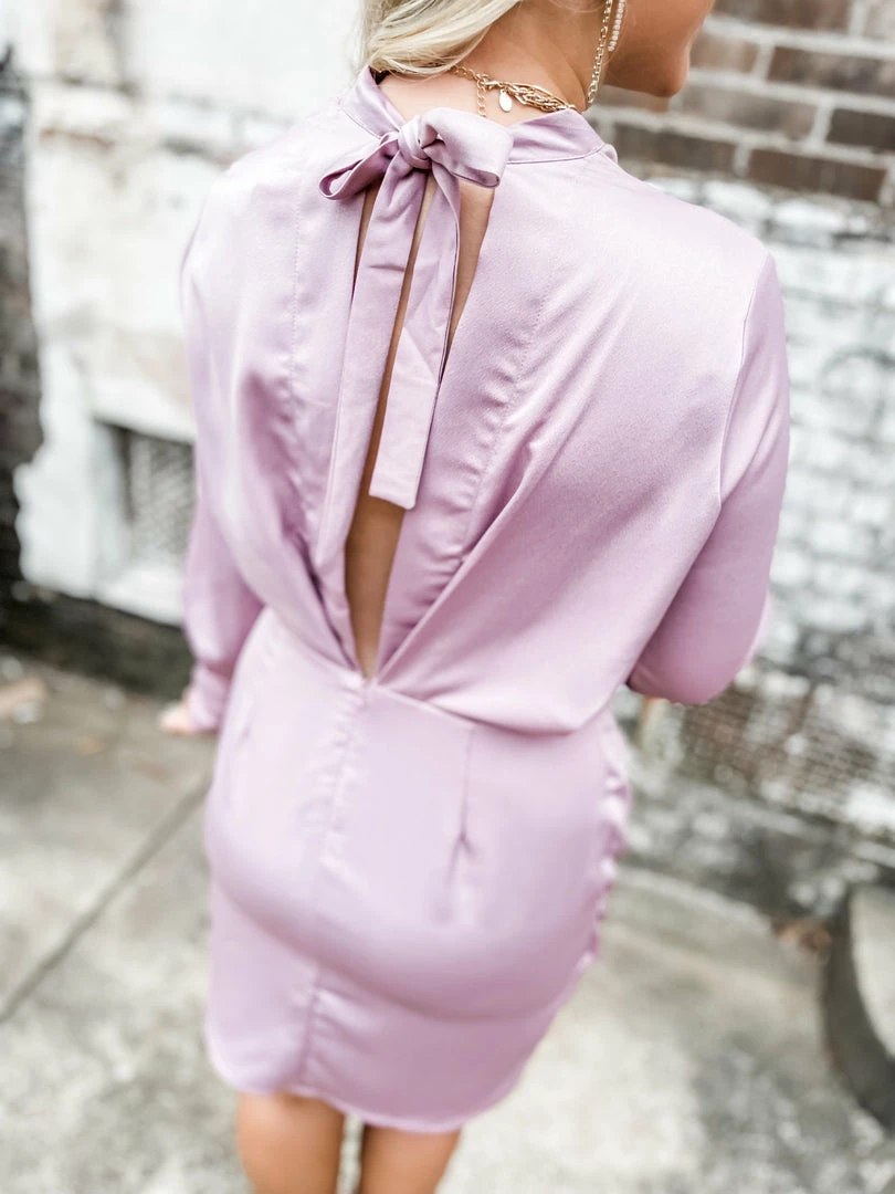 A dress crafted for cocktail hour and date night is here! The Kimber Dress brings a mock neck + long sleeves with a button cuff detail + gathered layered skirt + open back with tie element. The shade and fabrication are absolutely breathtaking. Add your favorite heels and dangle earrings, you’ll be good to go girl!