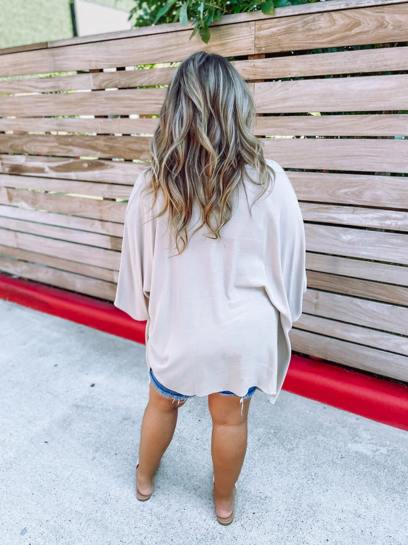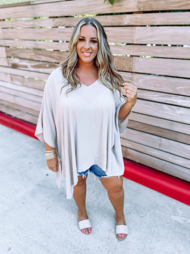 WE. ARE. OBSESSED. Meet the Charlie Tunic Top! Tailored with a scoop neck line + lightweight, breathable material + angled hem. This Oversized, Tunic Design makes this great for the summer heat! This tunic top will treat you right all year round! Styled with our Shannon Shorts + Faith Earrings + the Skylar One Band Sandals.