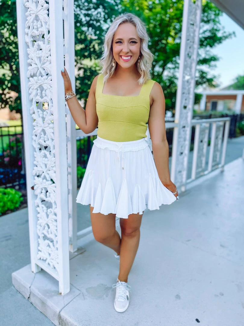 Meet our Sonya Top! Bringing you thick, close fitting material + tank style + square neckline + designed to be cropped! This lil number will take care of your outfits every single day, a true closet basic! Perfectly paired with our Maisie Solid Ruffle Detail Skort