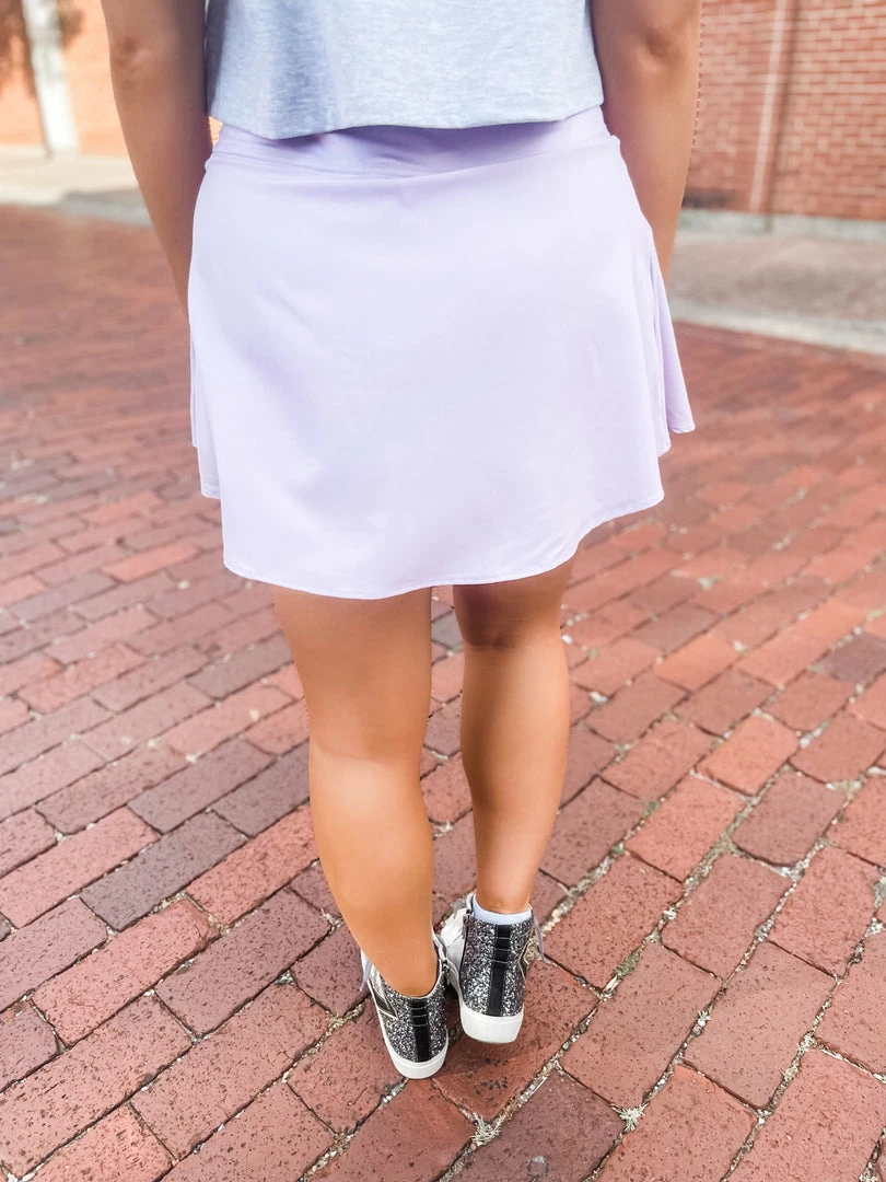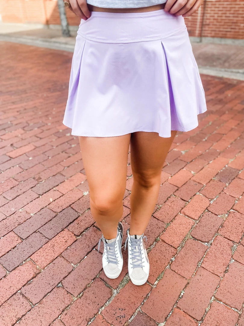 Move your body in the Brandy Skort! Showcasing a high waist band + pleated detail + lined with shorts. This perfect lil mini skort was made for you! Work out or run errands in this staple piece! BONUS: it is available in 3 colors! Style it like Ambrie and pair it with the Eva Cropped Tee + Passion Sneakers!