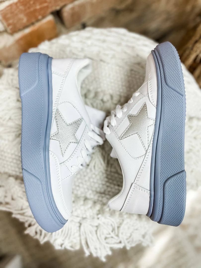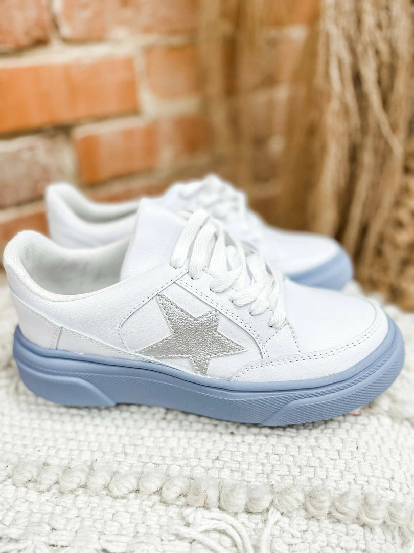 Strut it girl! Our Aria 22 Sneakers will have you feelin’ oh so fine and one of kind! Edgy style with the star side detail + + thick solid sole + white laces just make these shoes an instant need!!