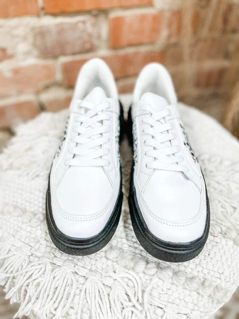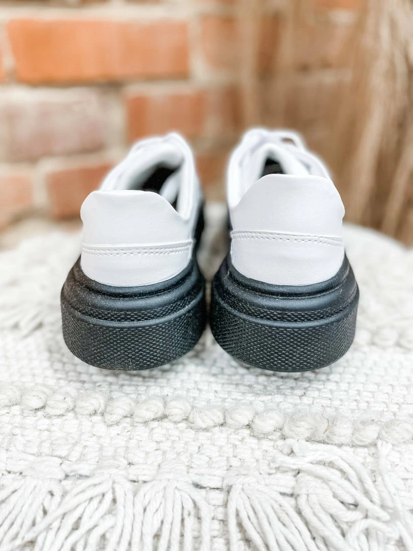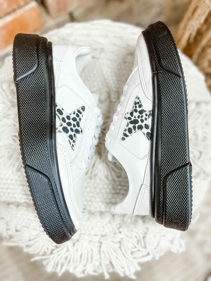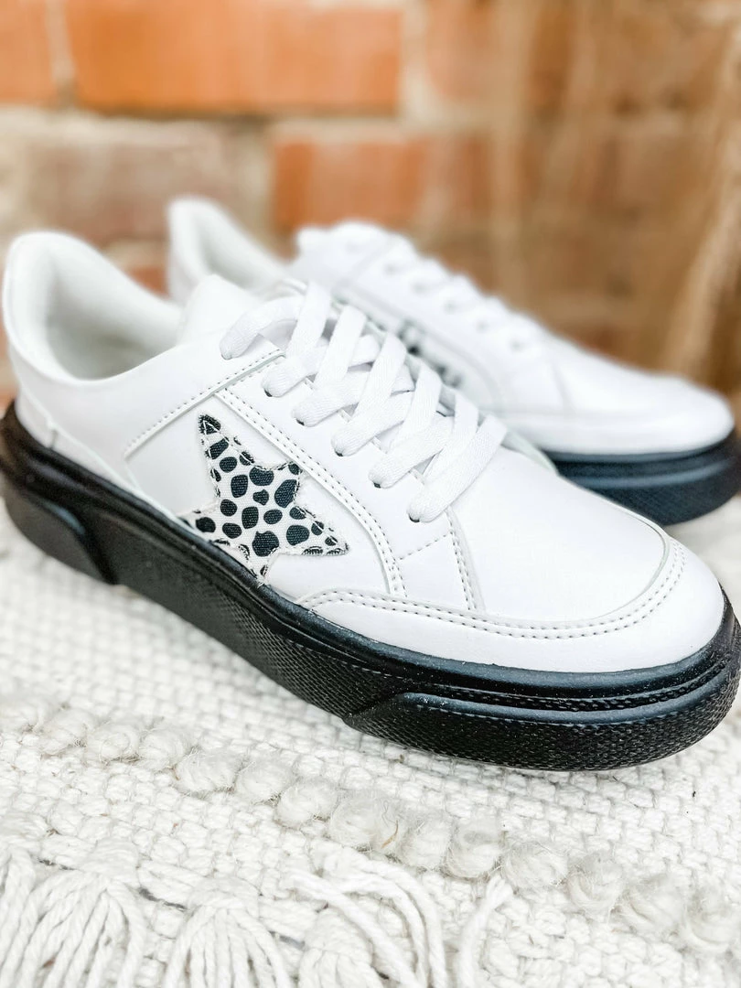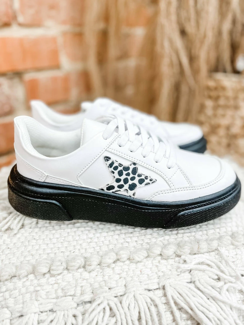 Strut it girl! Our Aria 22 Sneakers will have you feelin’ oh so fine and one of kind! Edgy style with the star side detail + + thick solid sole + white laces just make these shoes an instant need!!