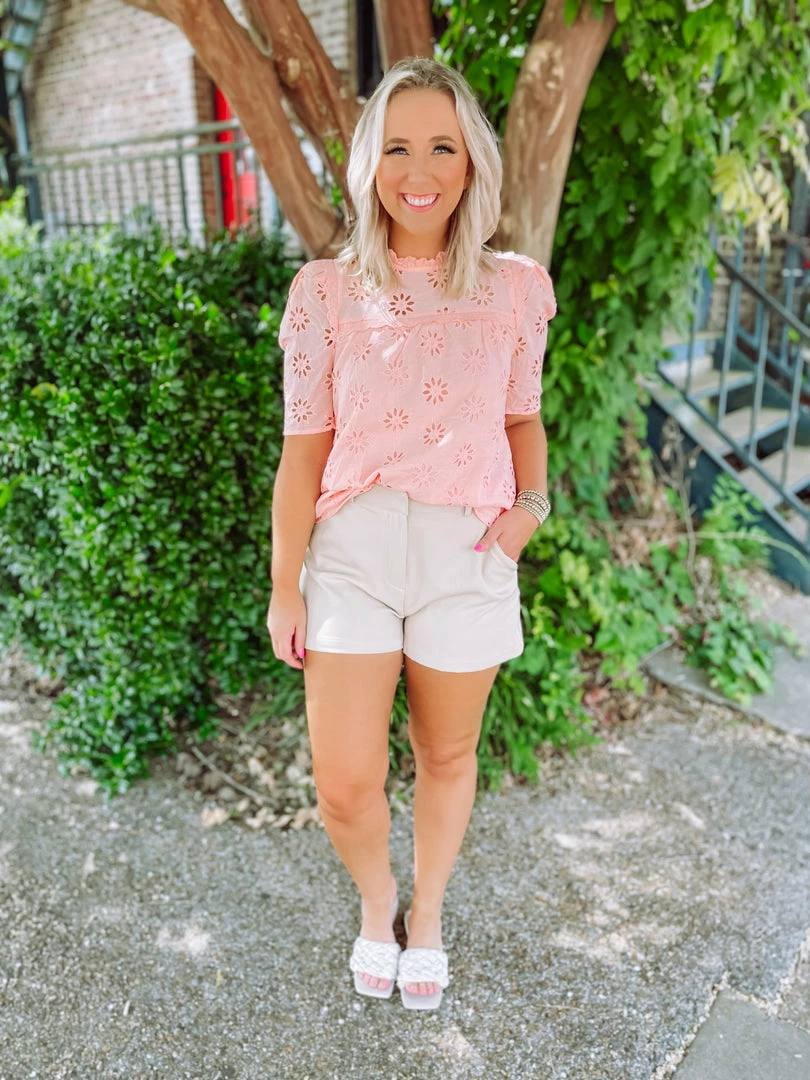 Falling fast for the Raya Shorts! Tailored with 2 functional front pockets + clasp/ zipper closure + functional belt loops. These shorts can dress up any top with ease! The great length and classy sand color make it simple to style! Perfectly Paired with the Rue High Neck Top + the Apron Sandals.