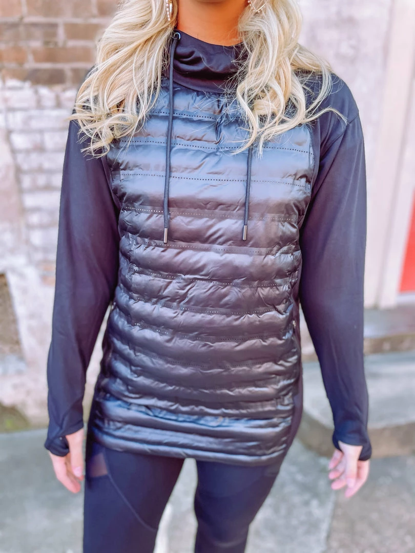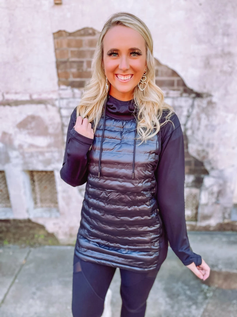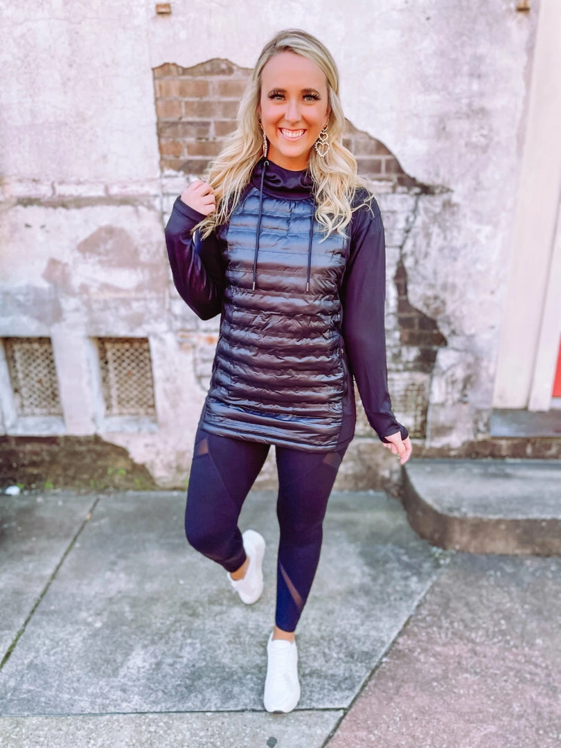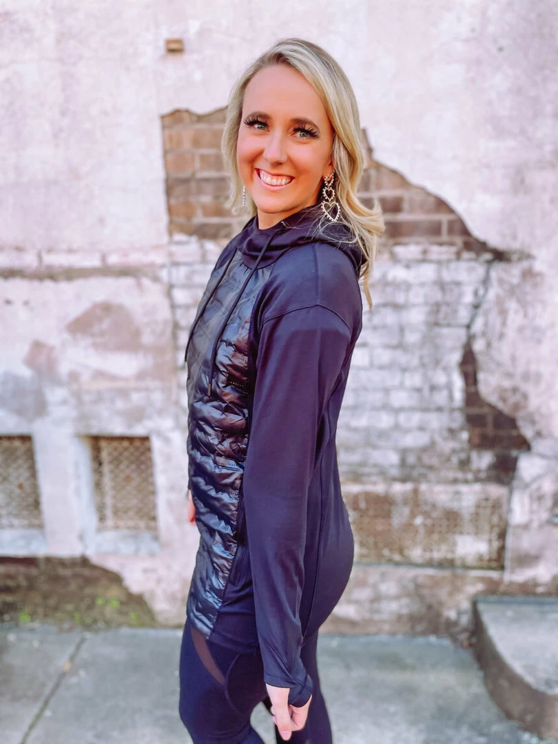 Chic layering has arrived in our Micah Hoodie! Tailored with a puffer a front + kangaroo pocket + hoodie + legging friendly length! Buttery soft and totally practical, this sweet hoodie is a must! We love it for a casual fashion forward athleisure look and it’s great for traveling! Styled with our Avery Sneakers and Ziva Leggings.