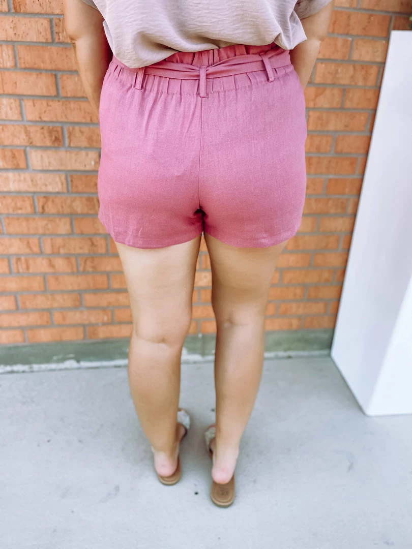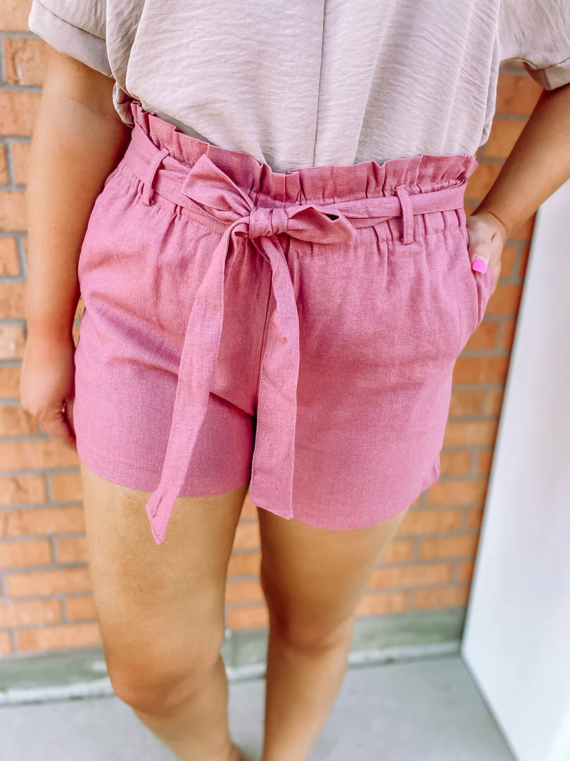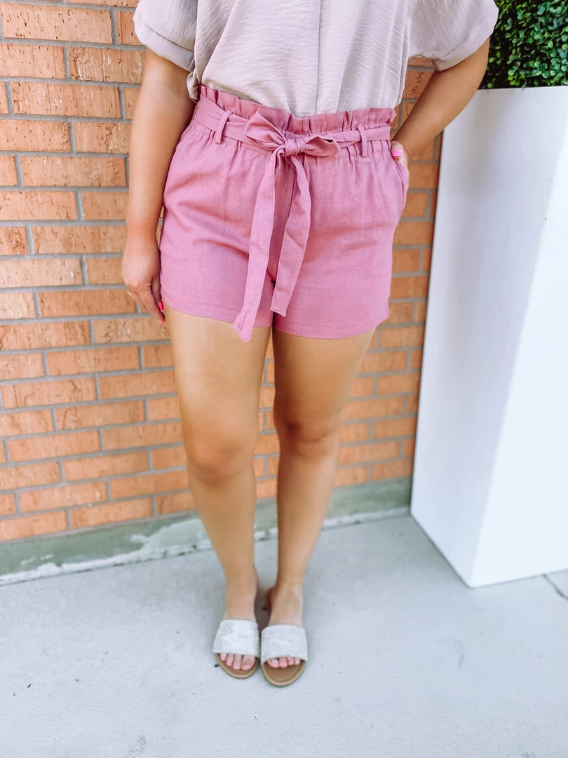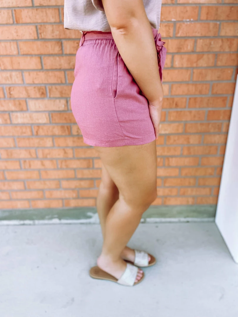 Linen cuteness + paperbag fit= the Jasmine Shorts! These perfect shorts are designed with a a removable waist tie and belt loops + 2 pockets! The mauve color seals the deal! Wear this item with a graphic tee and sneakers or take notes from Shelby and pair it with the Ashley Top + Skylar One Band Sandals.