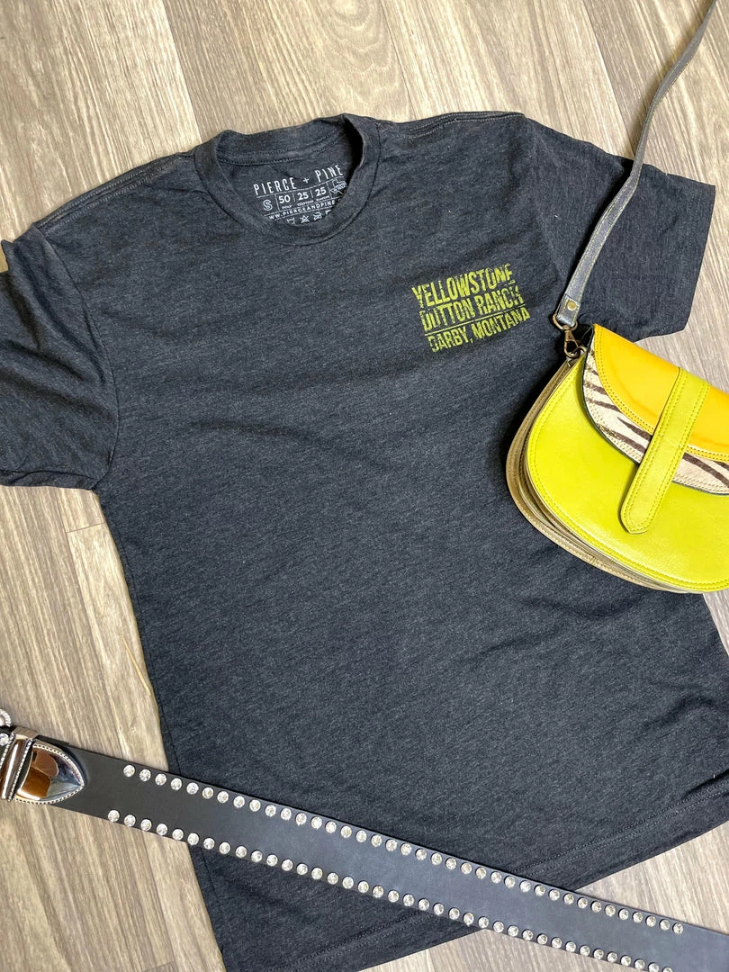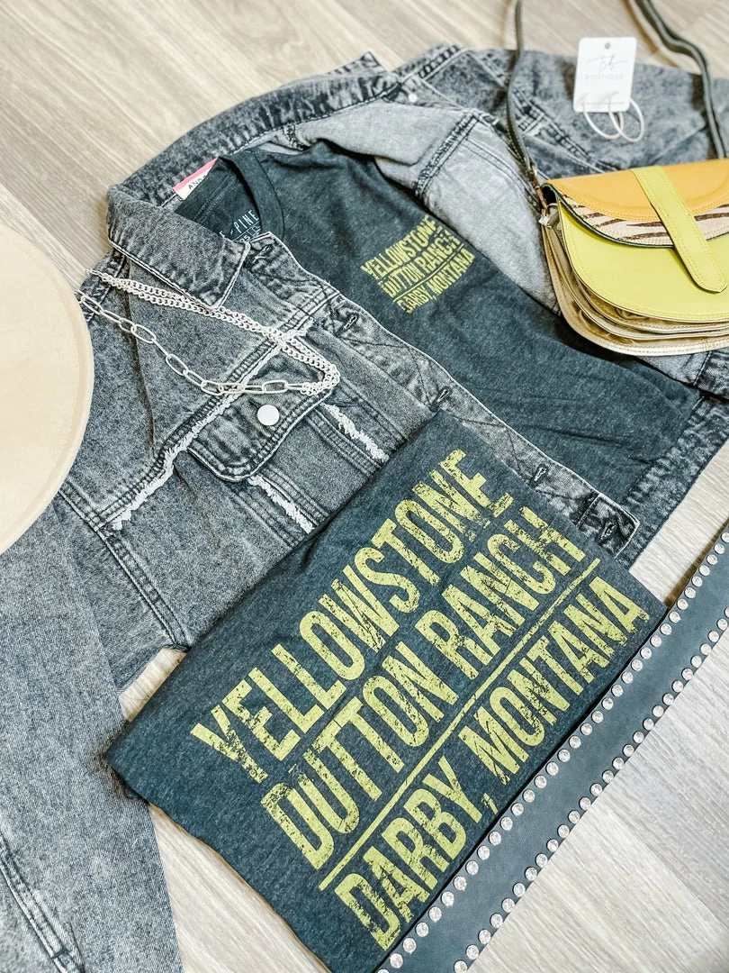 I’m the tornado and you’re the trailer park 😉 NEW SEASON COMING SOON!! We are beyond ready! Are you?! Rep your love of Yellowstone with this new tee! Showcased on a vintage black Next Level top is our truly on point design! Snag em now for your Yellowstone watching crew! Styled with our Jamie Raw Edge Accent Washed Denim Jacket and Taya Leather Crossbody.