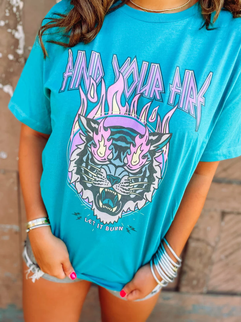 Find your fire in our newest graphic tee! Showcased on a teal top with an edgy design is the tee you need! Wear it oversized with leggings or style it like Morgan! Perfectly paired with the April Shorts and the Passion Star Sneakers.