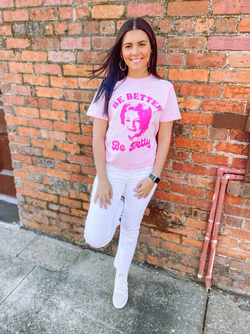 Be Better, Be Betty <3 We had to showcase some love to Betty White! Tone on tone pink is just right! We love this tee for all your favorite spring fits and it’s the perfect gift for all who love her! Perfectly paired with our Elena High Tops and Lacie Mid Rise Straight Leg Jeans.