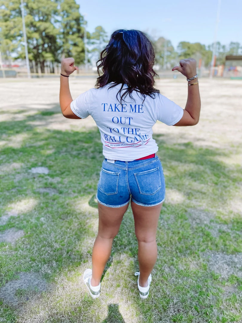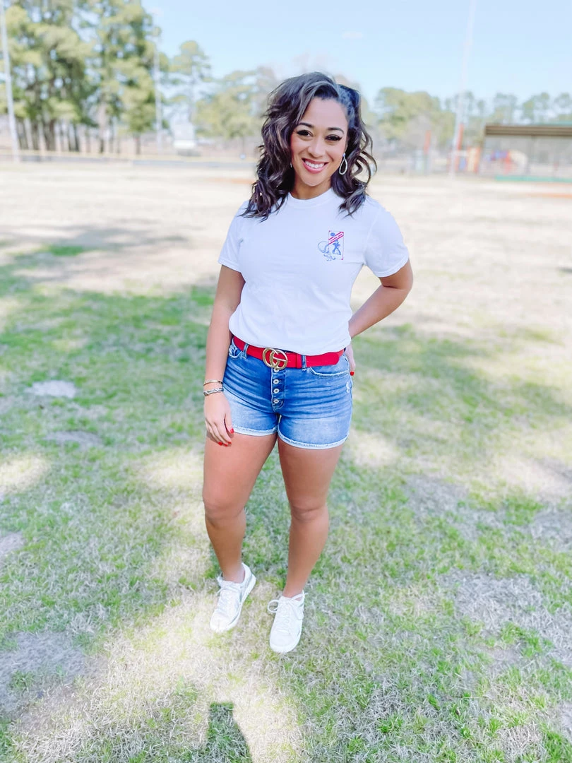 Eat. Sleep. & Watch ’em play ball! Our To The Ball Game tee is here just for YOU this season! Featured on a Comfort Colors top is our super cute design! Grab a pretzel and enjoy the game! Styled with our Red GG Belt, Everly Shorts and Eliza Low Top Star Sneakers.