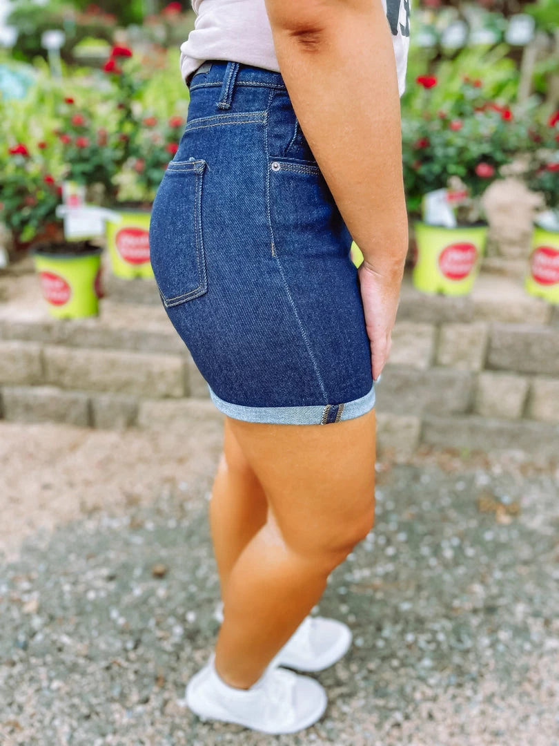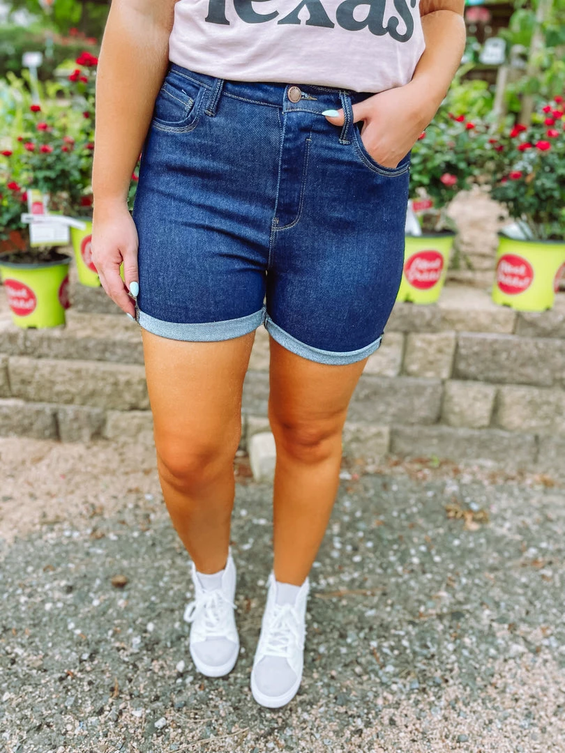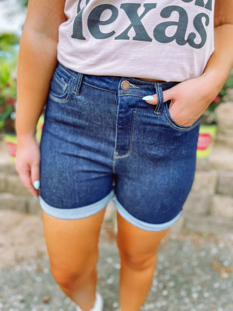 Our Shelby High Rise Rolled Up Shorts feature true blue deep washed denim. Tailored with a button/zip fly, 5 pockets, high waisted and cuffed hem. Fashion forward style is what we like to offer our customers and these shorts definitely fit that category! Perfectly paired with our Don’t Mess With Texas Graphic Tee.