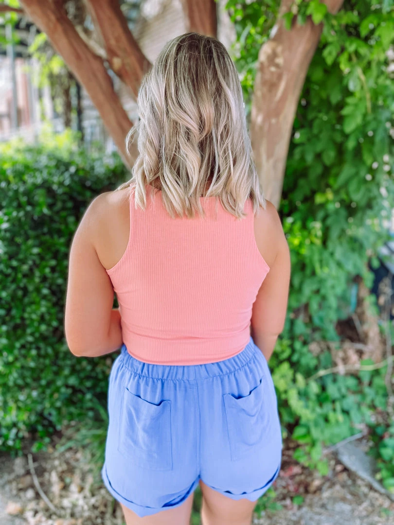 The Mary Halter Bodysuit is soft and stretchy as ever in a premium ribbed knit material! Featuring a halter neckline + clasp closure. It beautifully pairs with literally everything! A basic worth every fashionista moment! Styled with our Maggie Linen Shorts + Posie Kimono + Ball Twist Sandals + the Mary Gold Everyday Drop Earrings.