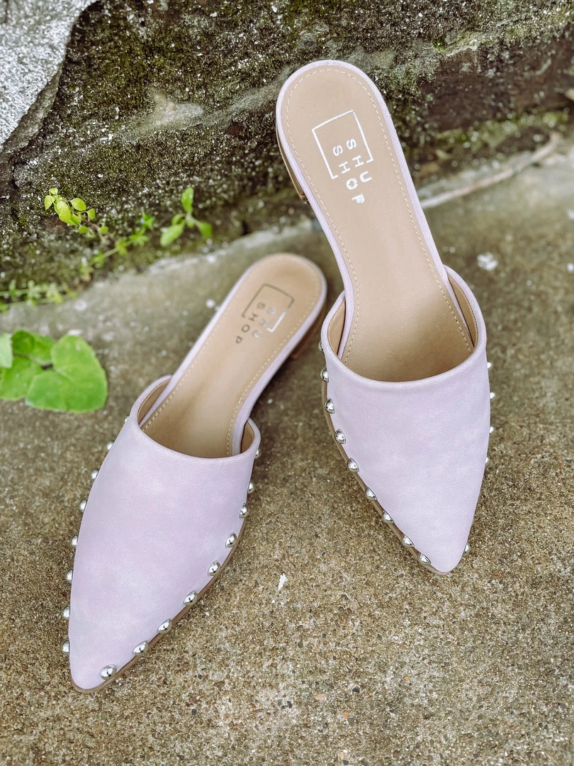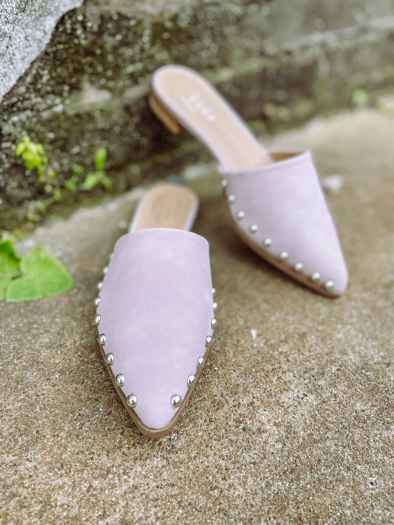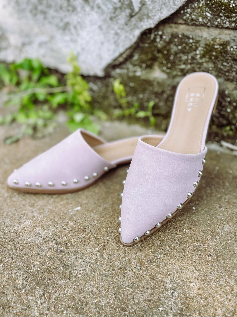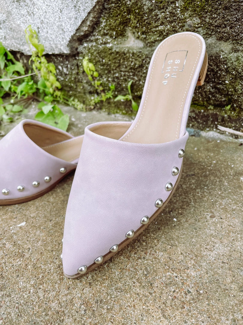 Good Shoes, Take You Good Places! & Our Trinity Mules will only let you have a glorious time! Showcasing Pointed Toe + Lavender Vegan Leather + Stud Detail + Low Heel! Chic and Comfort is what this shoe is all about!
