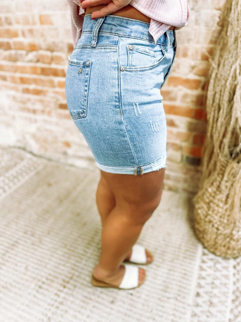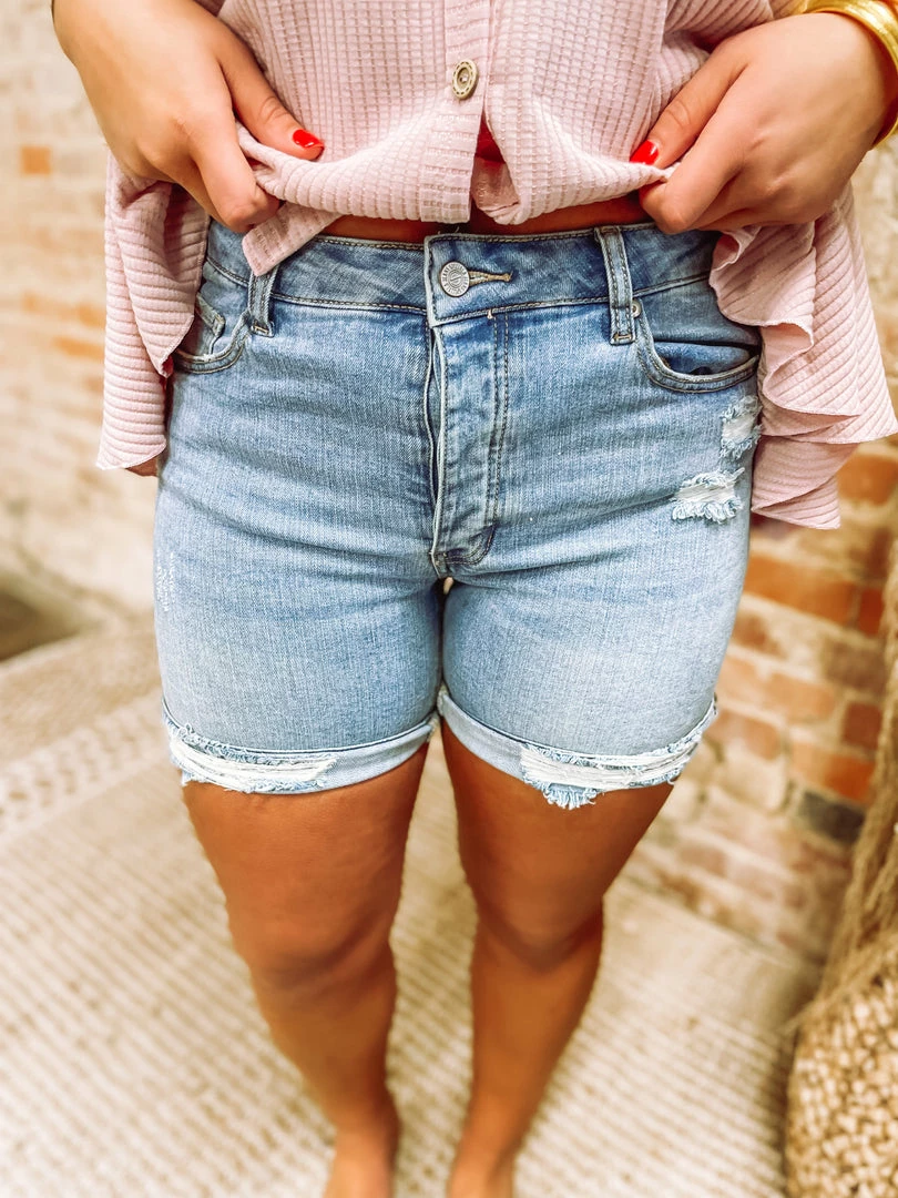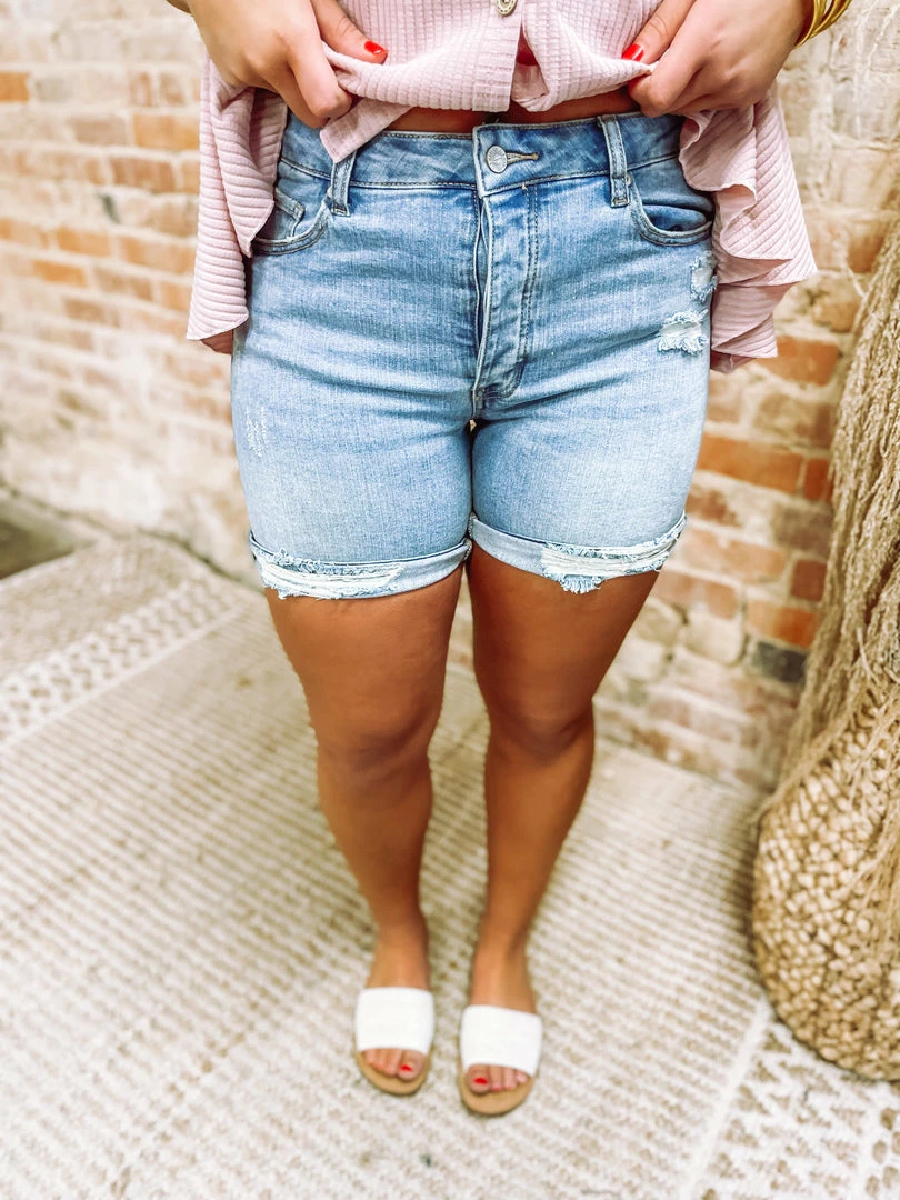 Warmer days are right around the corner! Embrace the heat in our Darla Mid Rise Boyfriend Shorts! Showcasing your traditional 5 pockets + front button/zip closure + belt loops! Finishing with distressed elements throughout & uneven hem! These edgy modest shorts will keep you confident and cute!