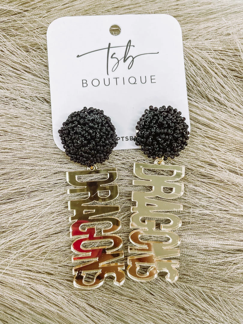 Show your school spirit wherever you go in the Dragon Pom Earrings! Designed with a black pom element, these earrings are perfect for game days or any sporting event!