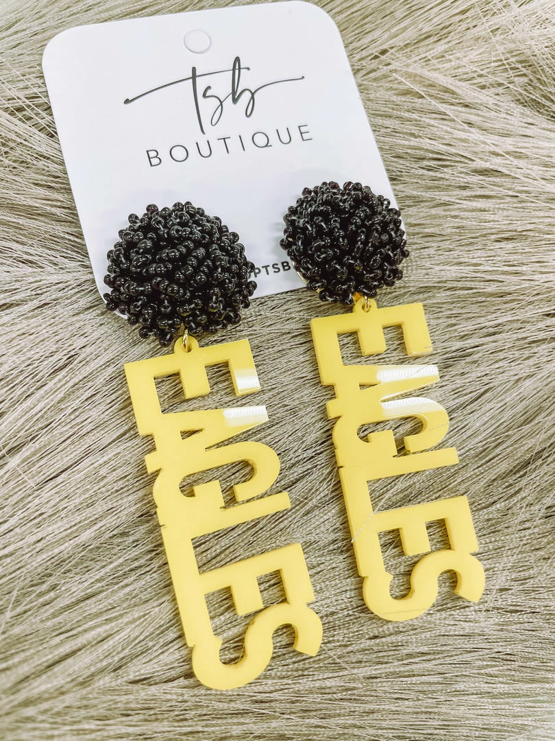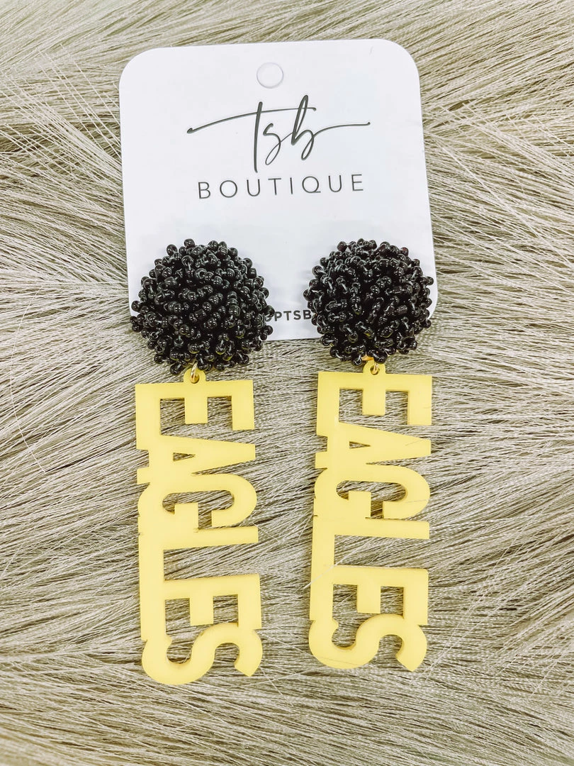 Texas Bling 2022 School Style Yellow Eagles Black Pom Earrings