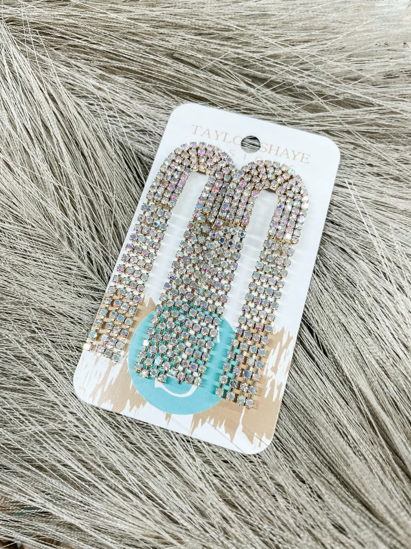 Texas Bling Alexa Rhinestone Chain Drop Earrings- Iridescent