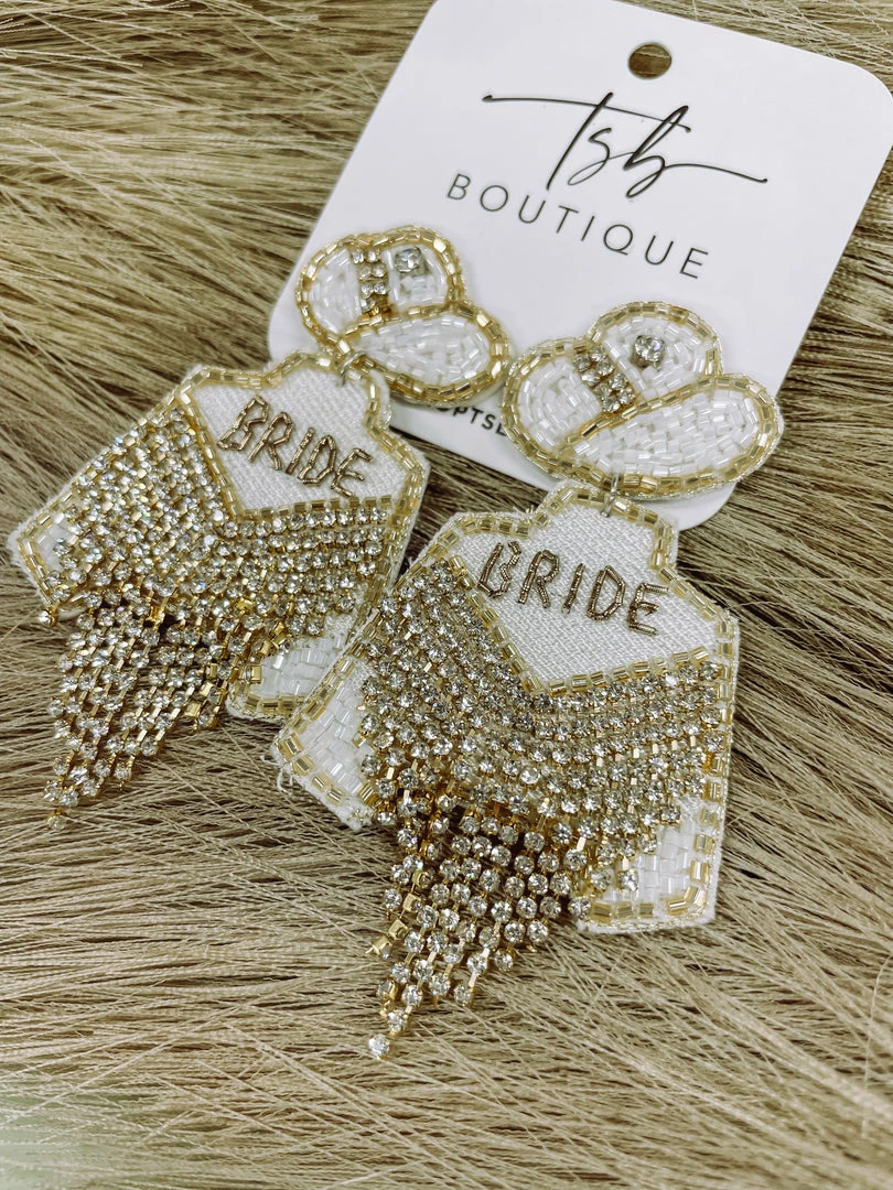 These beaded earrings provide total cuteness to all your favorite outfits for the bachelorette weekend! With a soft fabrication on the back side + fringe beading + fairly light weight, these earrings will only treat you right!