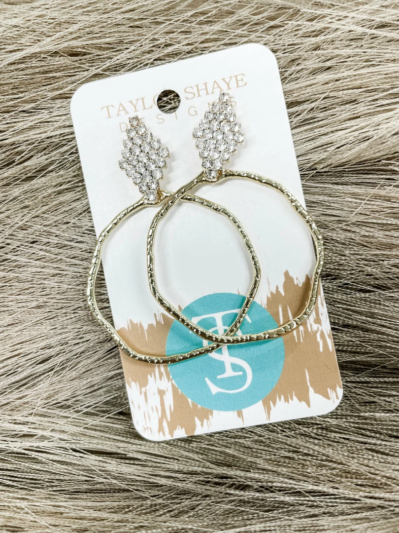 SKU: texas-bling-6753359167546 Categories: Accessories, Jewelry, Taylor Shaye Tags: Dressy earrings, Gold earrings, Gold jewelry, New jewelry, Power hour, Rhinestone earrings, Sparkly earrings, Taylor shaye