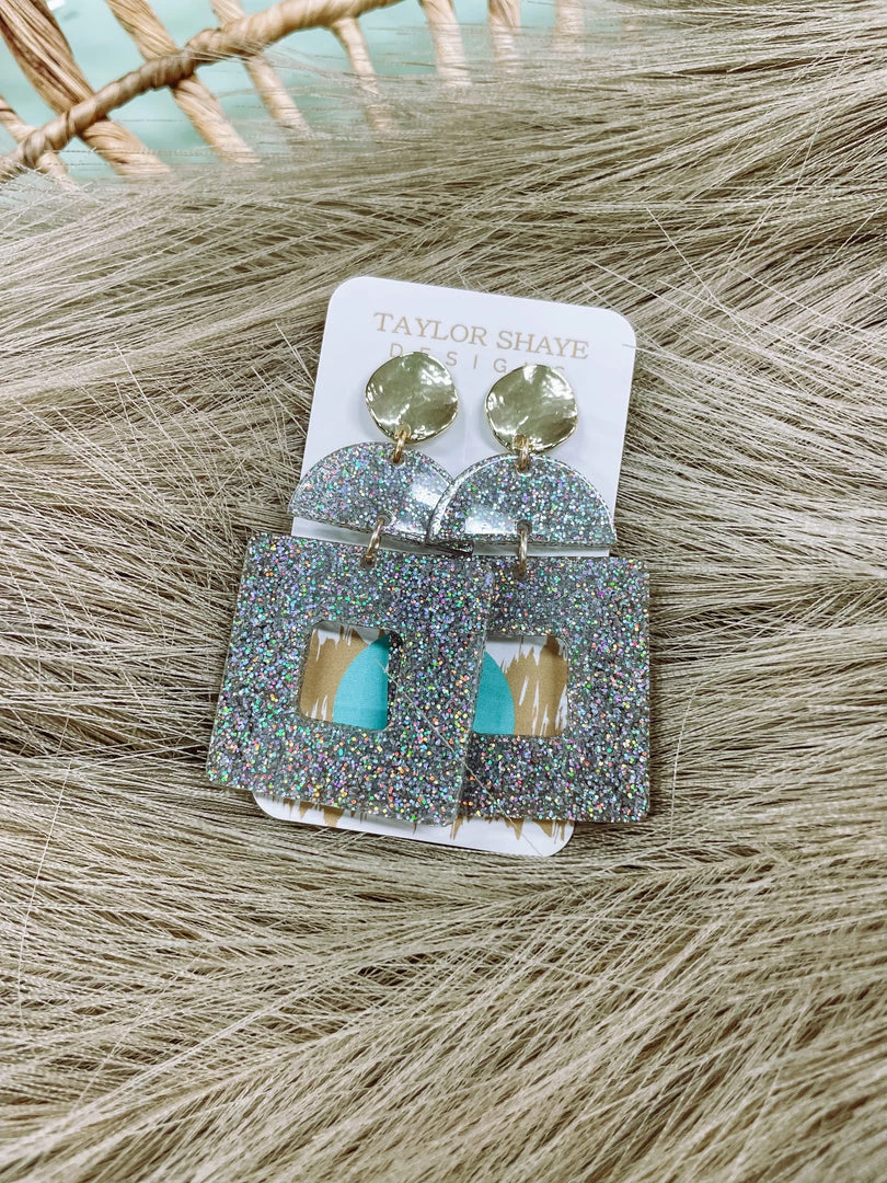 Texas Bling Carly Double Acrylic Square Drop Earrings-Multi Glitter