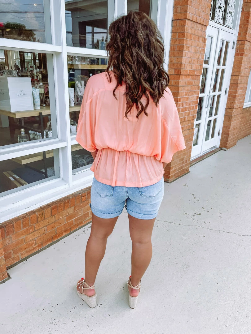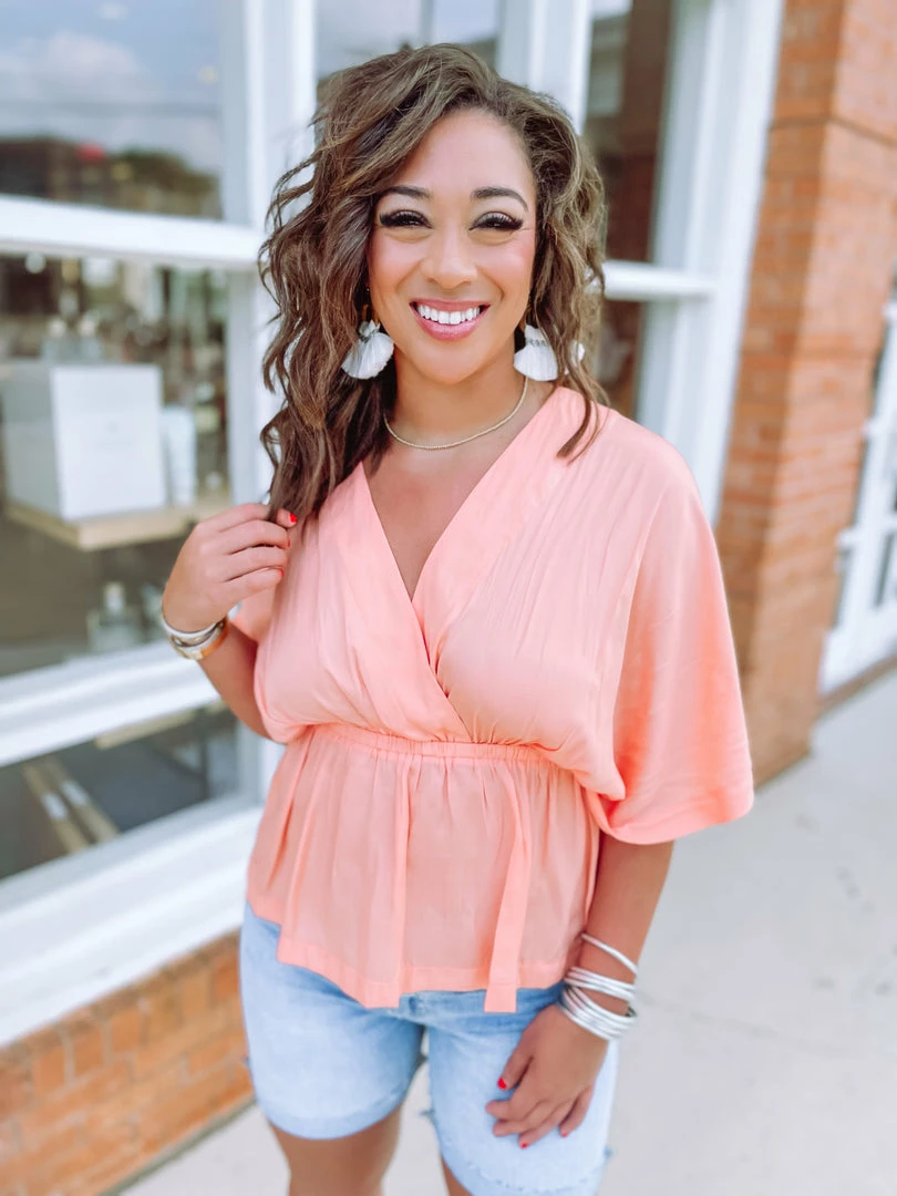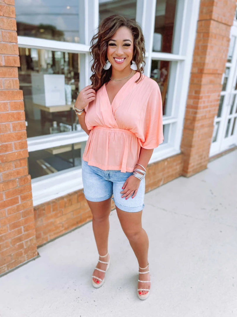 It’s all in the details! The Charlotte Top offers sweet, femme touches to make this item truly one of a kind! Designed with a v neck + pleated details + elastic wait band + sheer light weight fabric + peplum fit! An elegant piece that is great for GNO and concerts! Perfectly paired with our Abby Boyfriend Shorts + Giving Wedges + the Cabana Earrings.