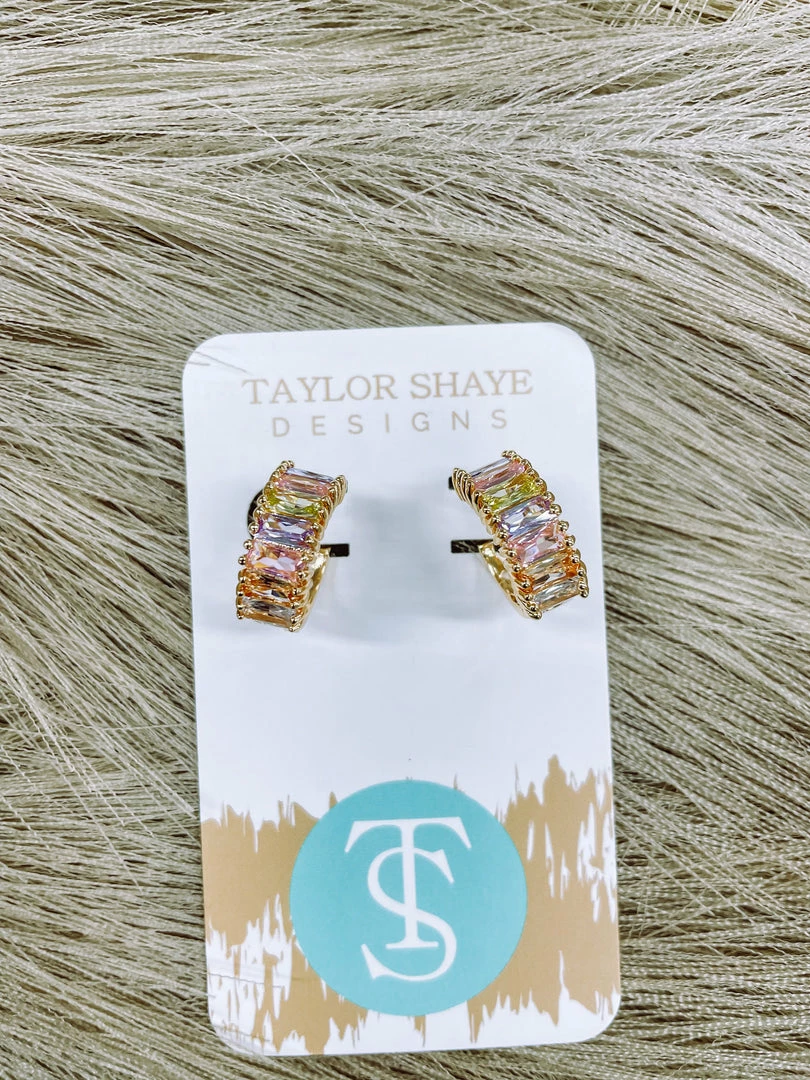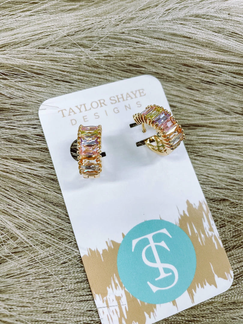 Texas Bling Crystal Baguette Huggies Earrings- Pastel