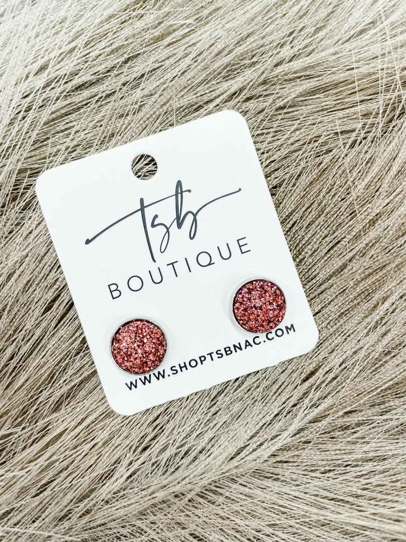 Texas Bling Druzy Round Stud Earrings- Rose Gold