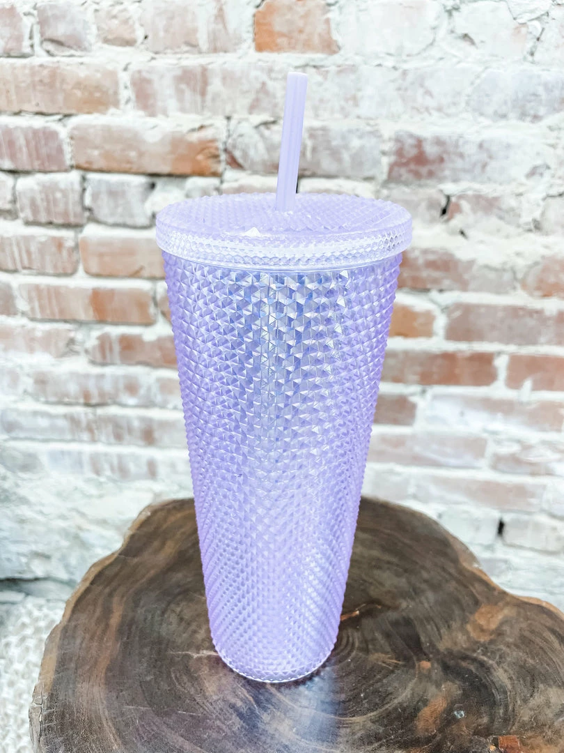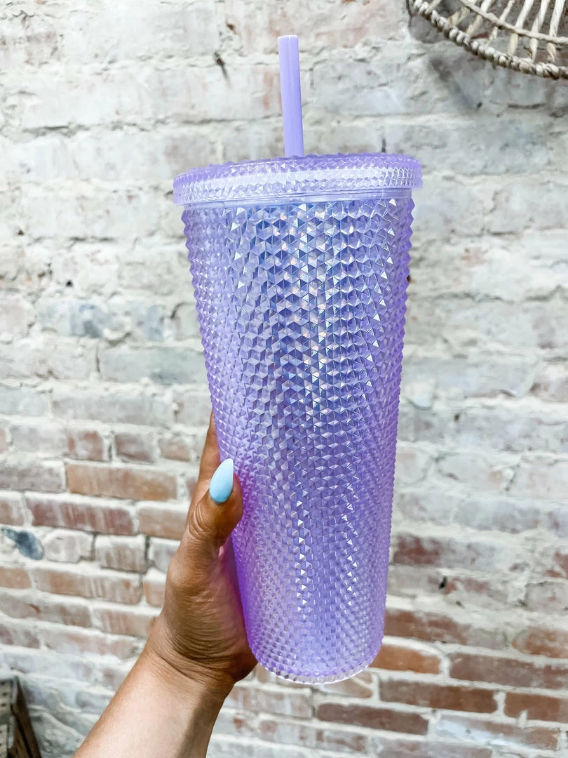 Stay hydrated in style with our newest Tumbler! Secure lid + straw + lilac iridescent in color!