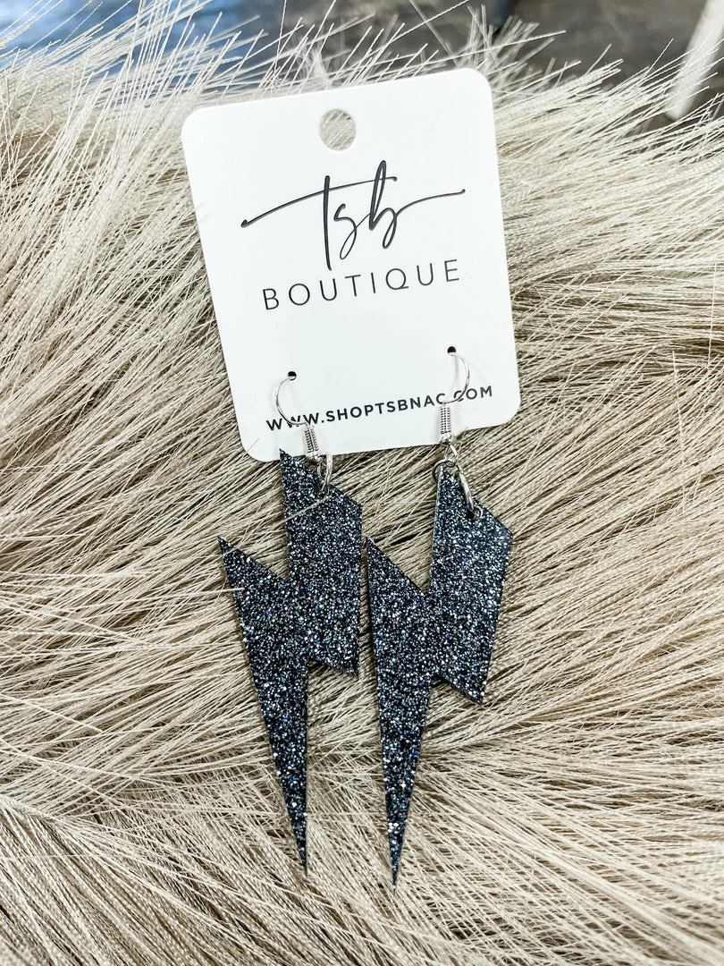 Texas Bling Glitter Lightening Bolt Earrings- Gunmetal