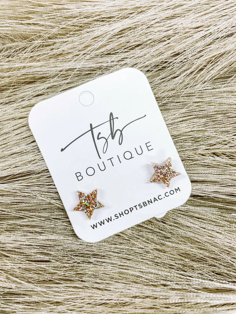 Texas Bling Gold Glitter Star Stud Earrings Jewelry