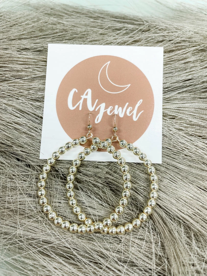 Shine bright girl in the Goldie Earrings! Designed as a hoop with shiny gold beading. These unique earrings will be your go to pair for every occasion!