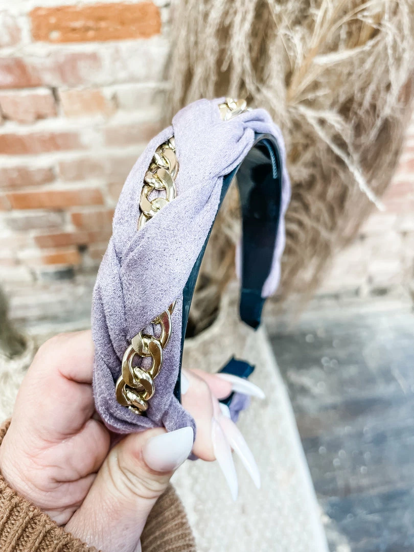 Our Heidi Gold Chain Headband will make every day a good hair day! Showcasing a solid suede headband with a braided chain detail!