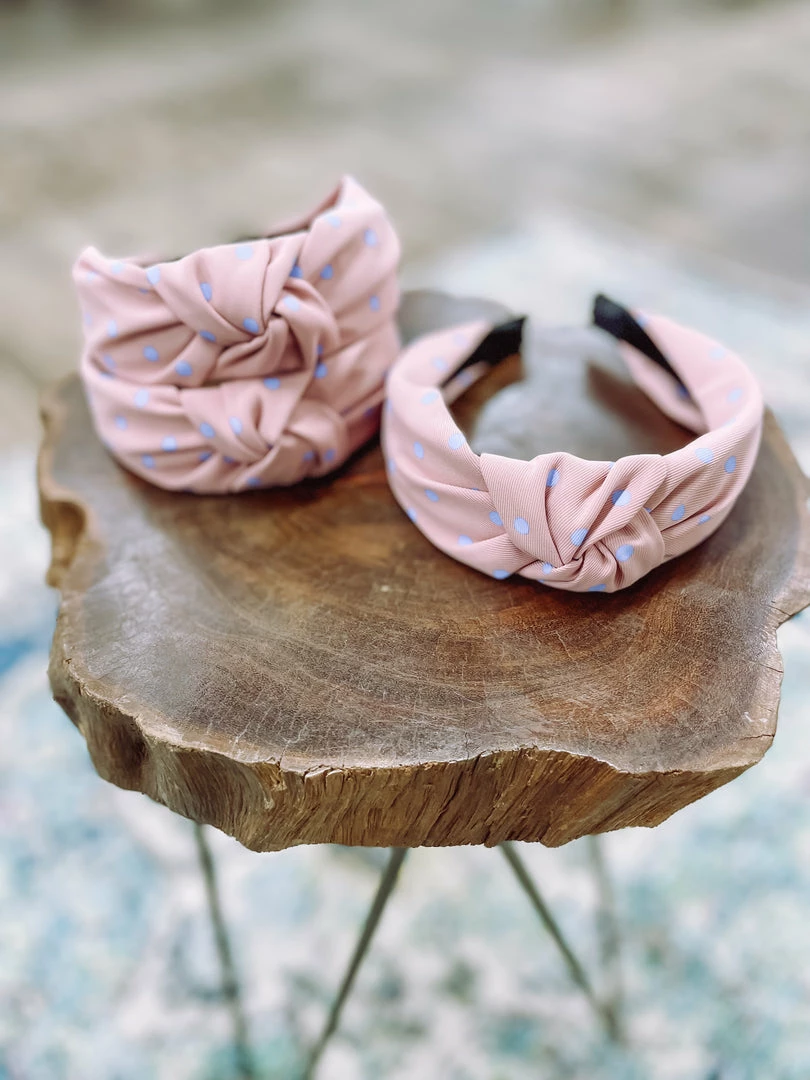 Texas Bling Hair Accessories Pattie Pink With Blue Dot Headband