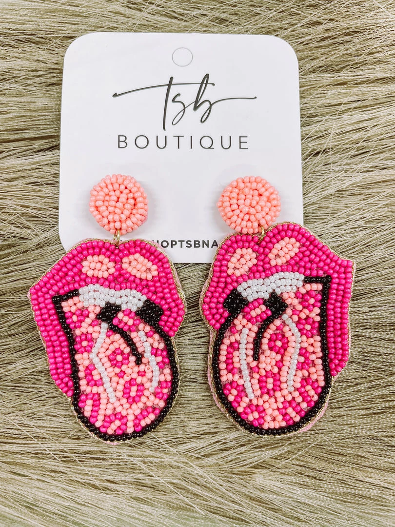 Texas Bling Jenny Pink Leopard Tongue Earrings Jewelry