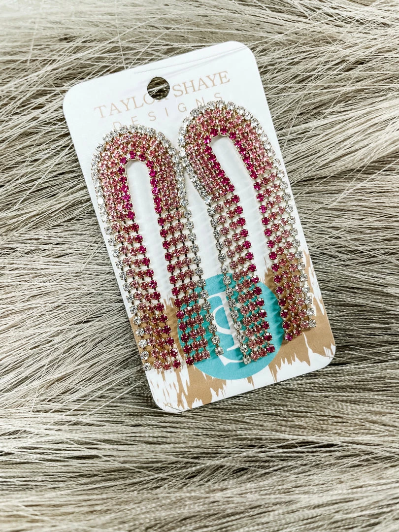 Texas Bling Jewelry Alexa Rhinestone Chain Drop Earrings- Pink Mix