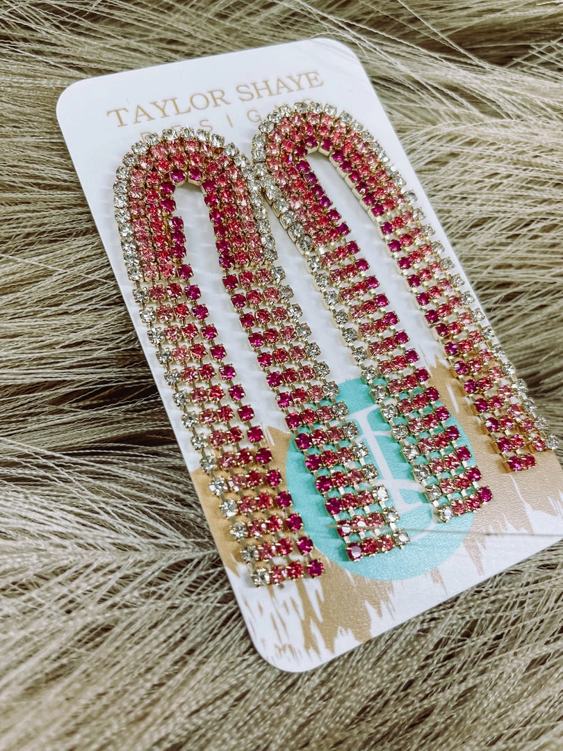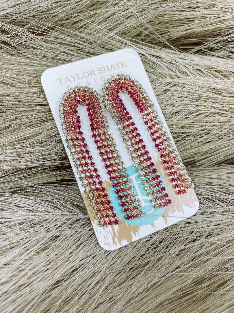 Perfectly polish your winter looks with the Alexa Earrings! Rhinestone meets pink rainbow color palette on these must have dangles! So lightweight and dressy, these beauties are IT ladies!