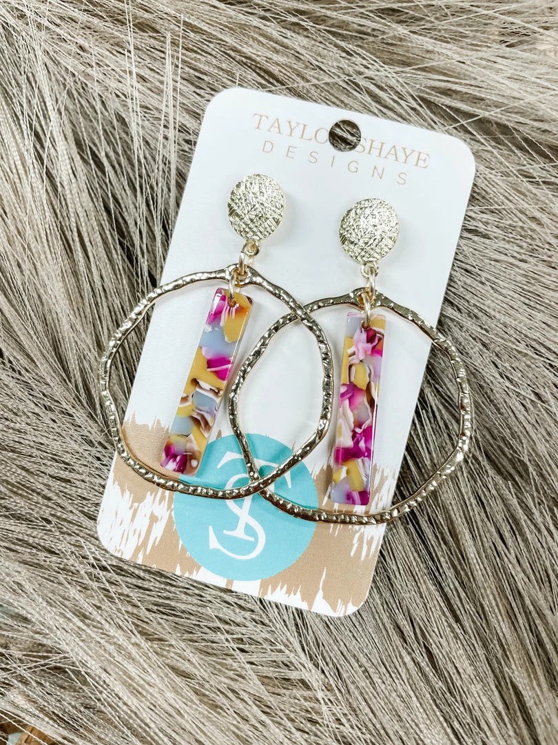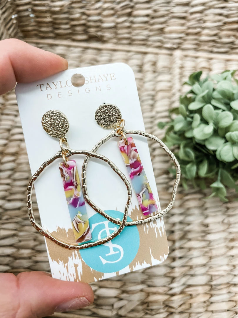 Beauty is who you are, JEWELRY is the icing on the cake 🙂 Our newest earrings are a hit! Gold hoops with a rectangle dangle detail full of fun + clear rubber backs! Enhance your outfit with these one of kind earrings!